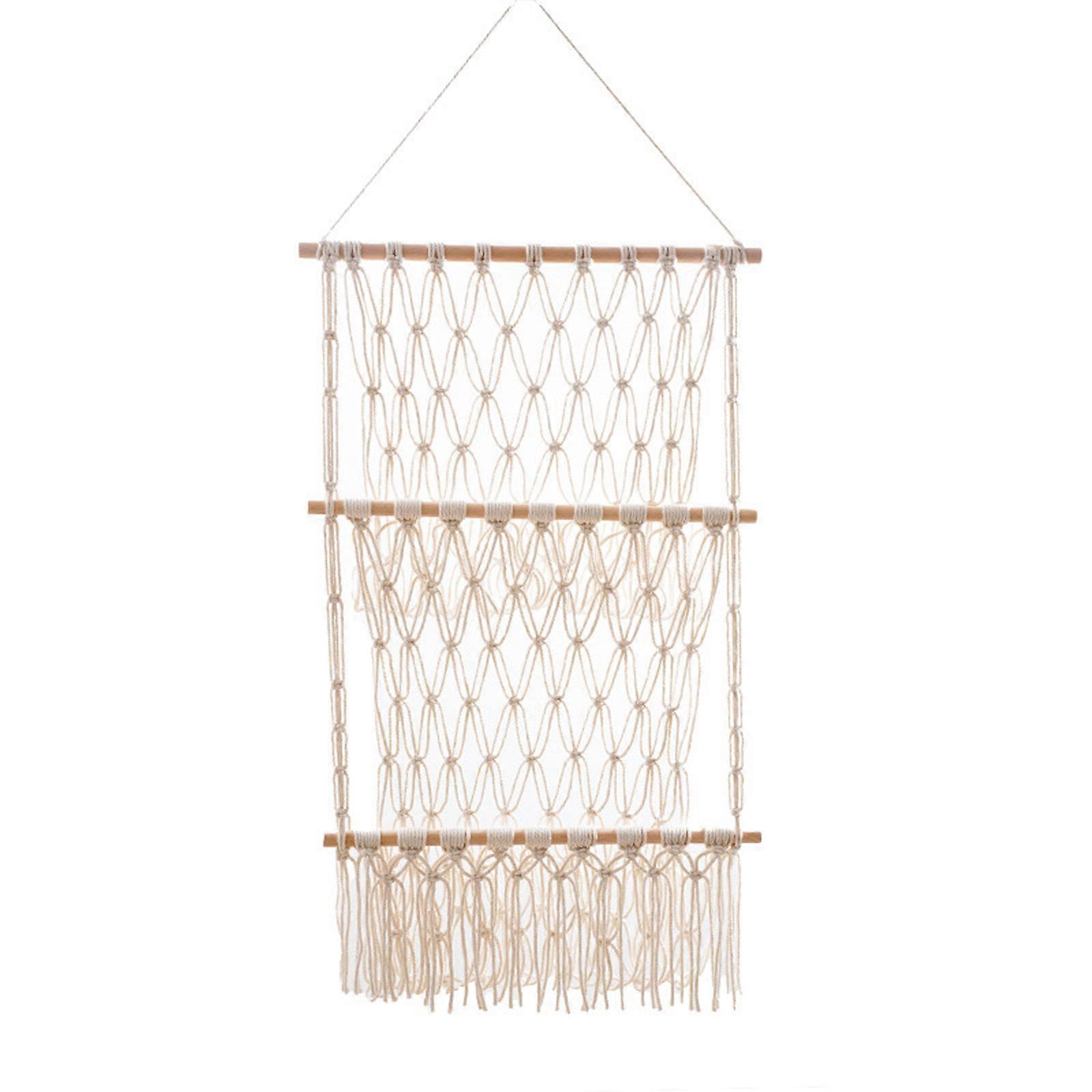 Handwoven Cotton Rope Hanging Shelf Multifunction Organizer Supplies for Home Bedroom Dormitory Wall Decoration Multicolor