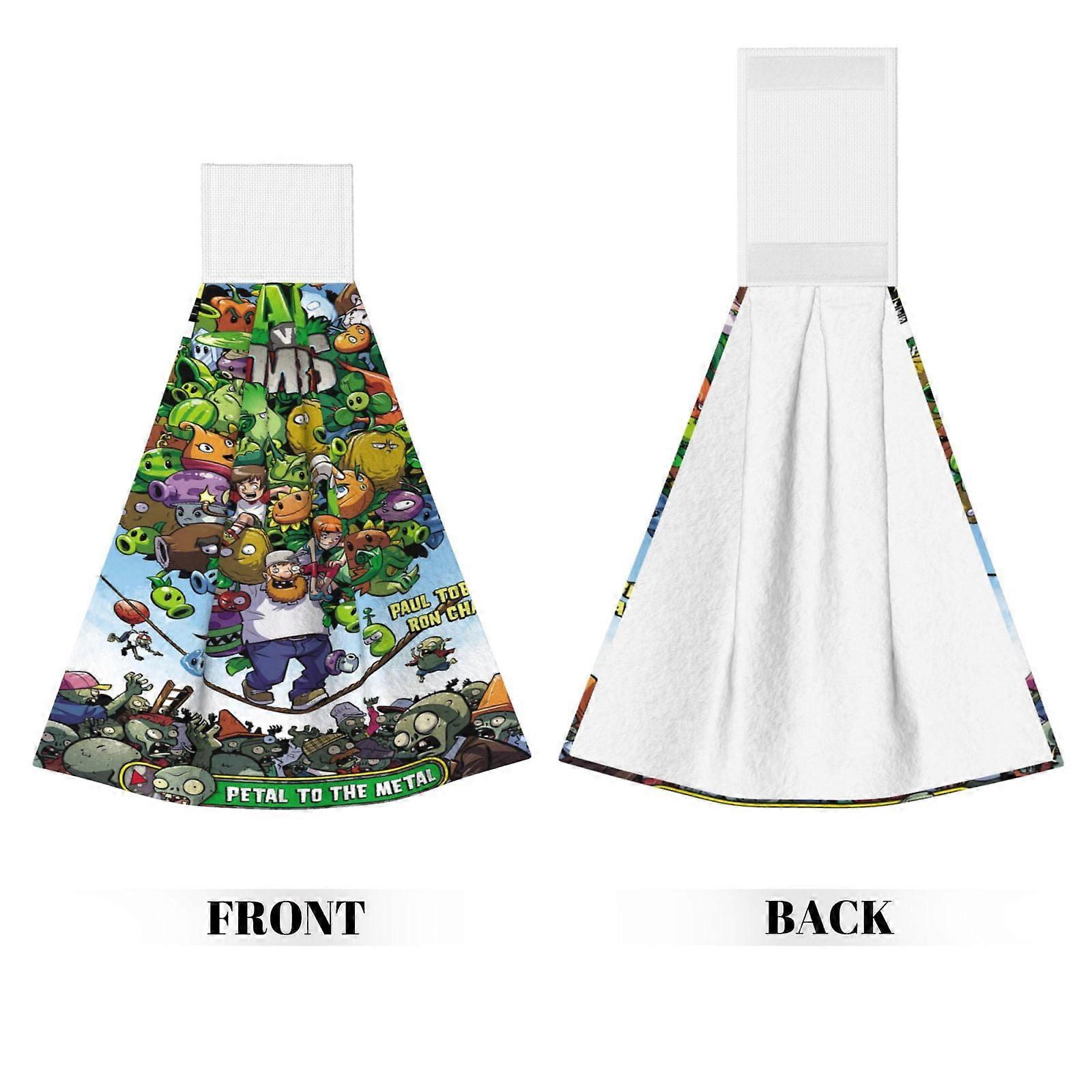 Plants Vs. Zombies Hand Towels With Velcro Loop, Coral Velvet Hand Wipes For Kitchen & Bathroom