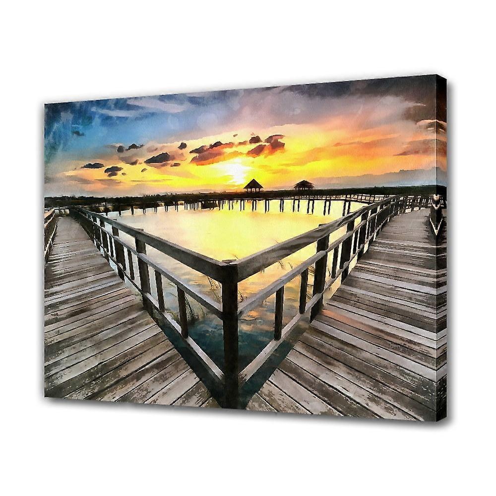Wooden pier by the sea in the evening Poster Decorative Painting Canvas Wall Art Living Room Posters Bedroom Painting,Frame-style,08x12inch(20x30cm)