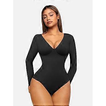 FeelinGirl Long Sleeve V Neck Tummy Control Thong Tops Bodysuit Lady Fall & Winter Clothing Breathable Fit