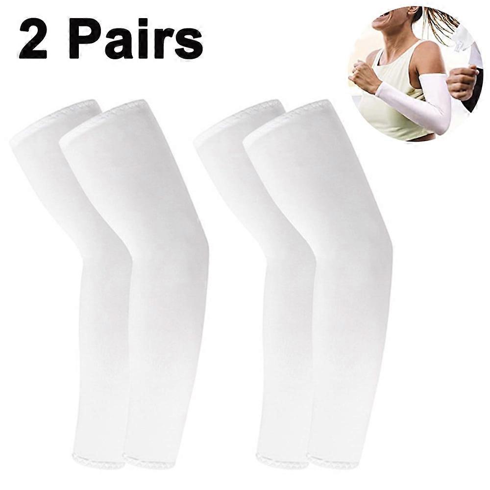 Levamdar Cooling Compression Sun White Sports Arms Sleeves, 2 Pairs