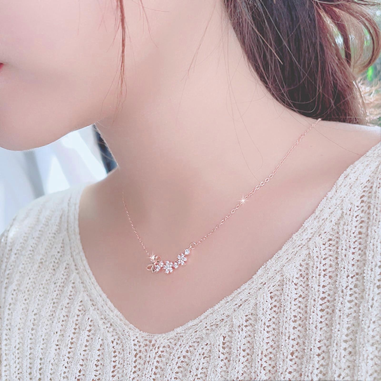 Hesroicy Women Necklace: Cubic Zirconia Bow-Knot, Hollow Flower, Electroplated Shiny Chain Jewelry for Women