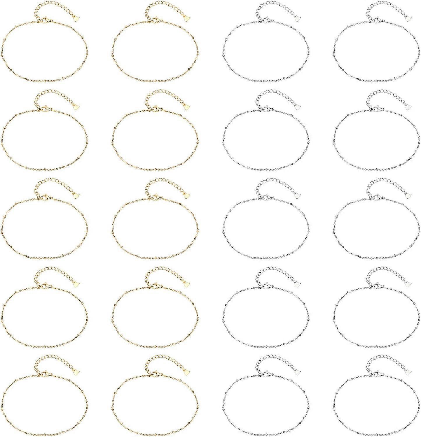 20pcs 2 Colors Stainless Steel Cable Chain Anklets 20.5cm with Rondelle Beads, Lobster Clasp & 70mm Extender - Minimalist Beach Jewelry