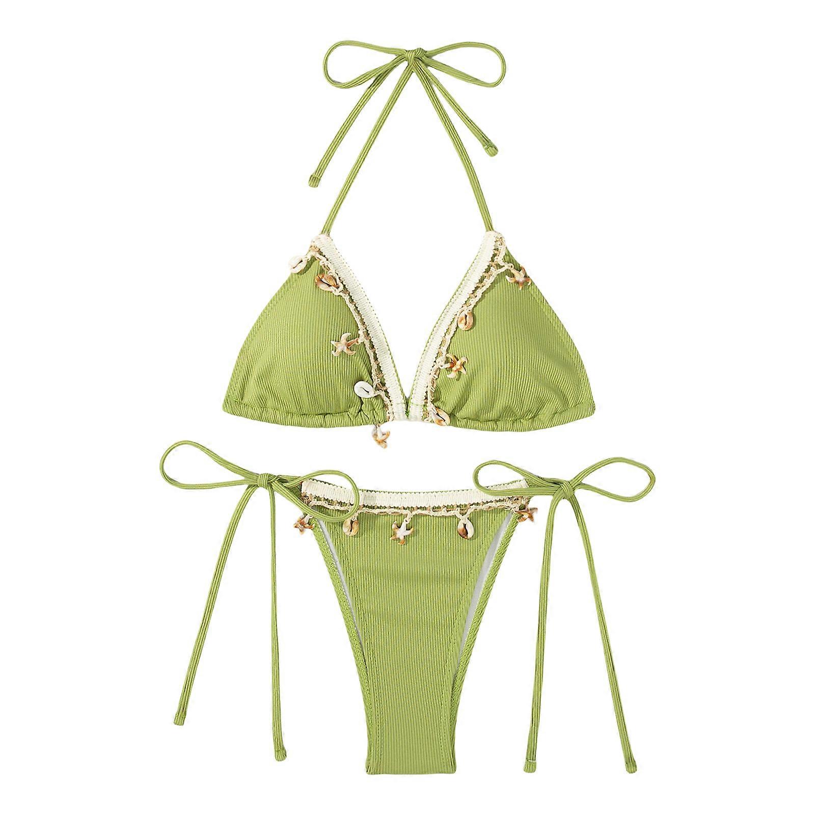Halterneck Swimsuit for Women Padded Bathing Suit Halterneck Swimsuit Adjustable Back Tie Beachwears for Beach Parties Yellowreen XL