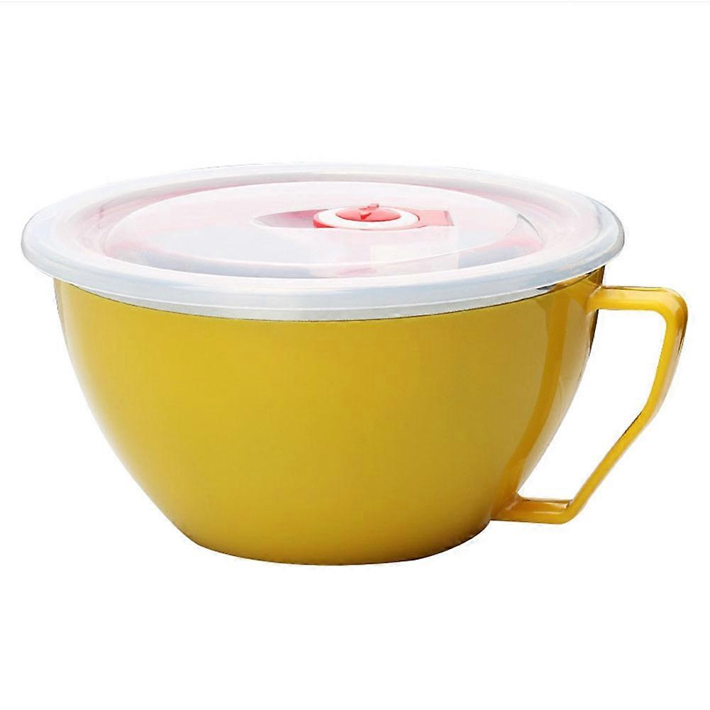 Hariumiu Stainless Steel Heat Insulation Anti-scald Instant Noodle Handle Bowl with Lid-Yellow