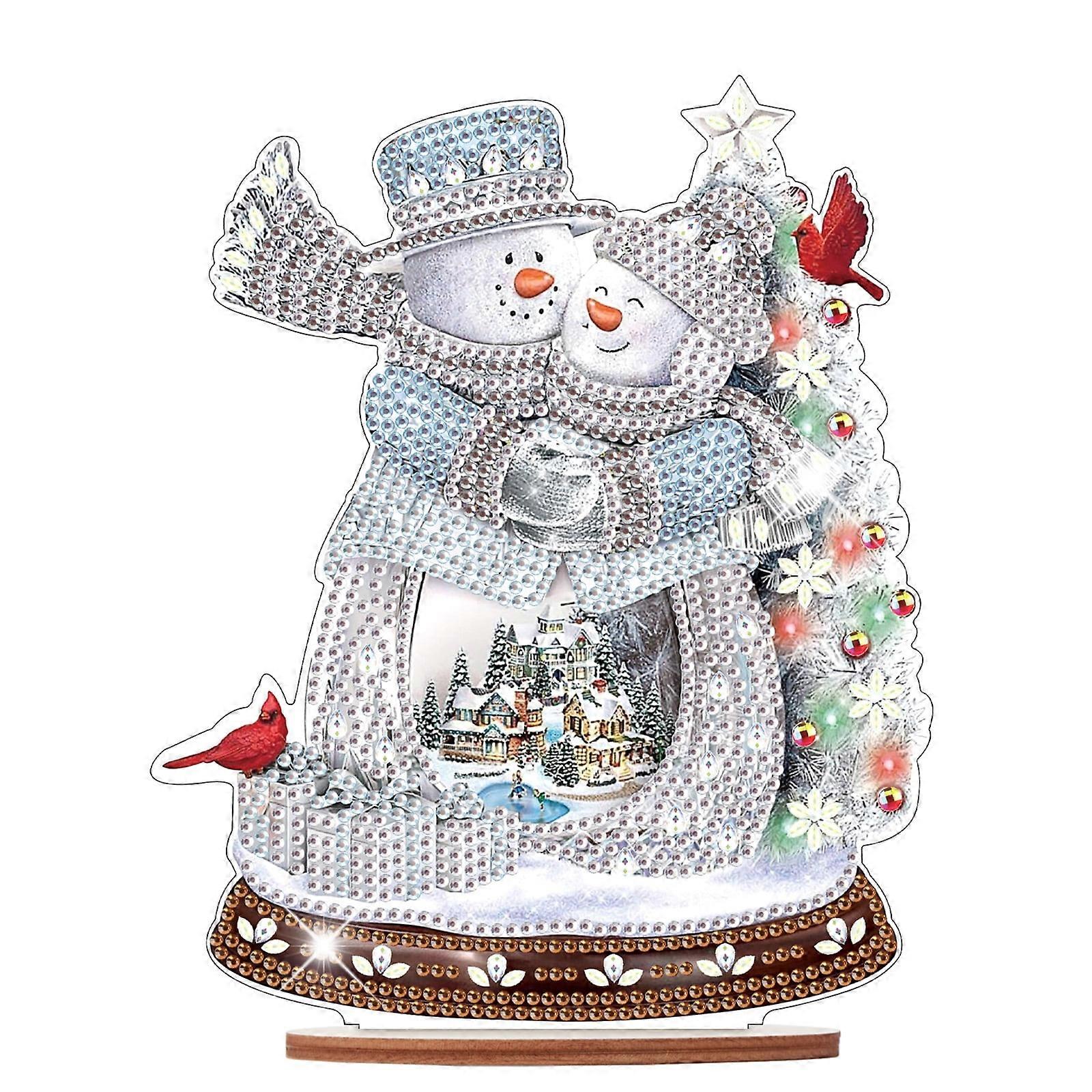 Diamond Art Painting Kit, House Snowman Hug DIY Desktop Decoration Diamond Art Ornament, Special Shape Diamonds for Decorating Home Office Desktop