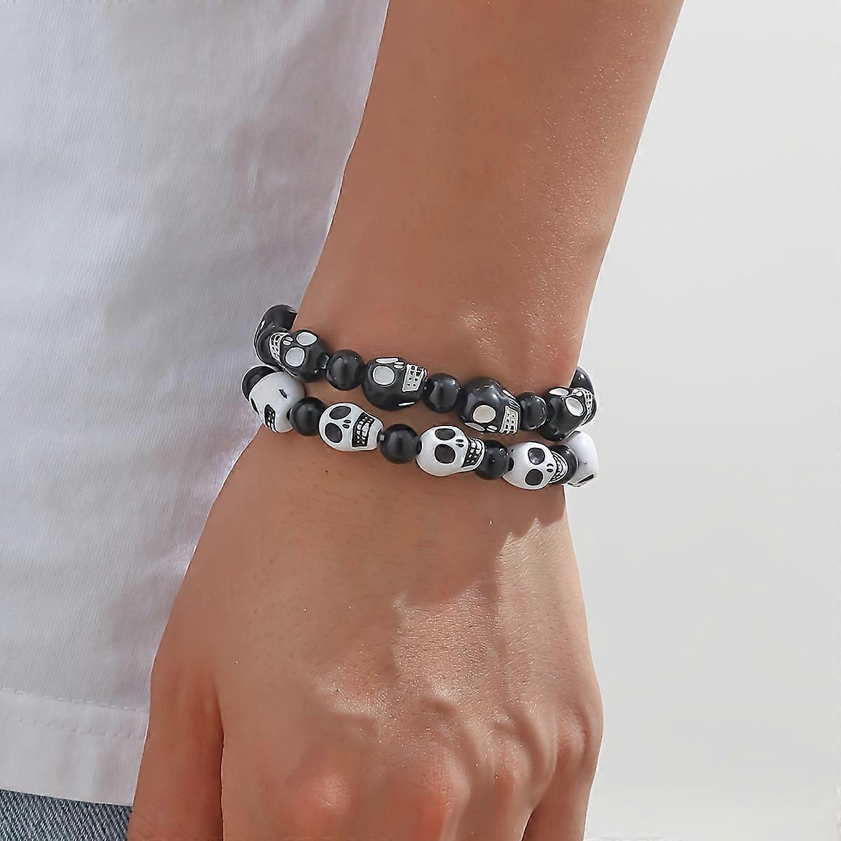 2pcsObsidian Skull Bracelet For Boys, Retro Niche Design, Handsome And Versatile Bracelet
