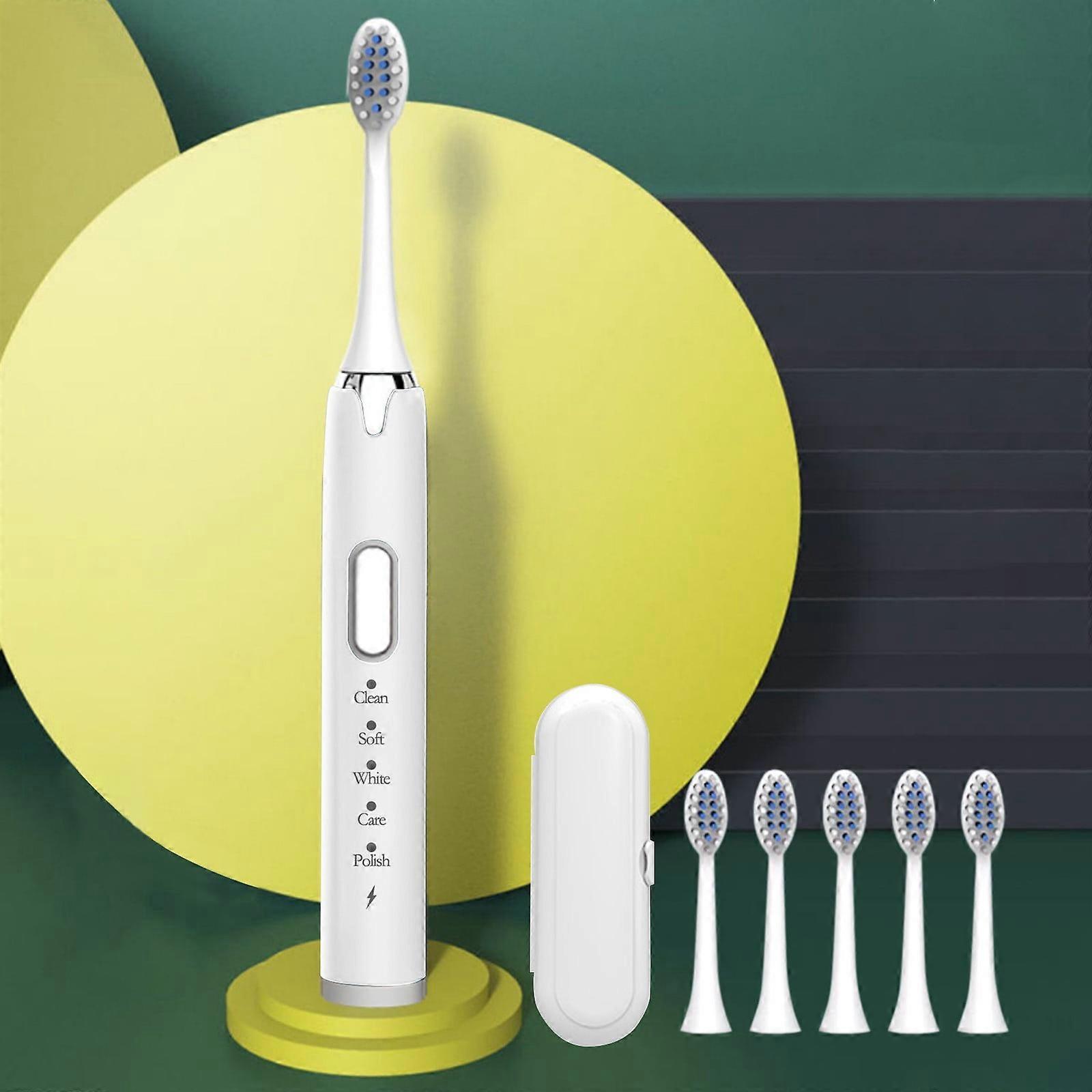 EQWLJWE Electric Toothbrush for Adults, 6 Brush Heads & Case, 5 Modes, Waterproof – Compatible with Standard Chargers
