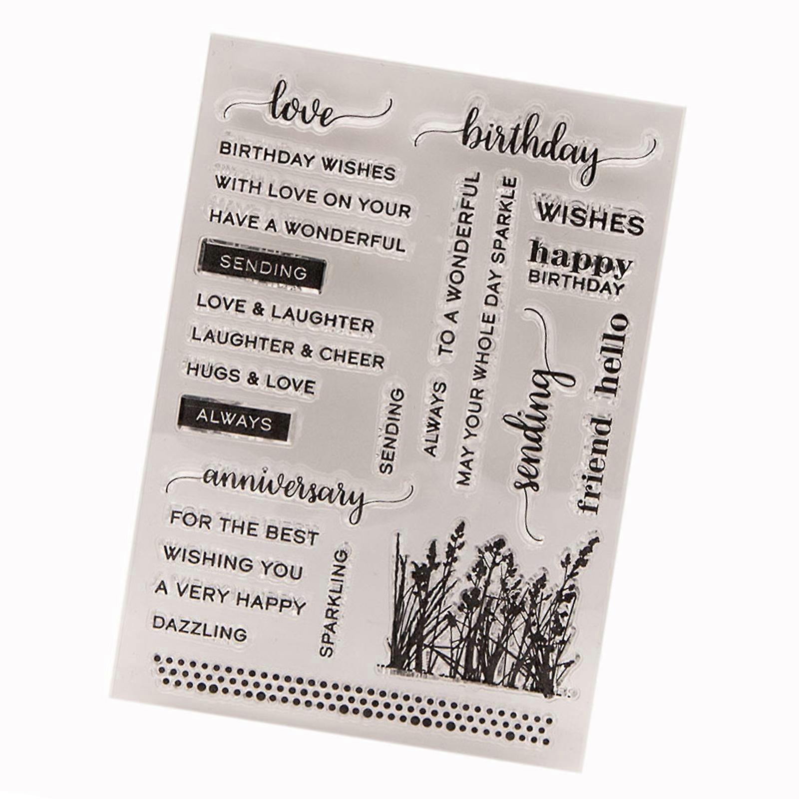 Greeting Words Clear Stamp for Scrapbooking Photo Album, Blessing Words Stamp for Birthday Christmas Valentines Wedding Multicolor