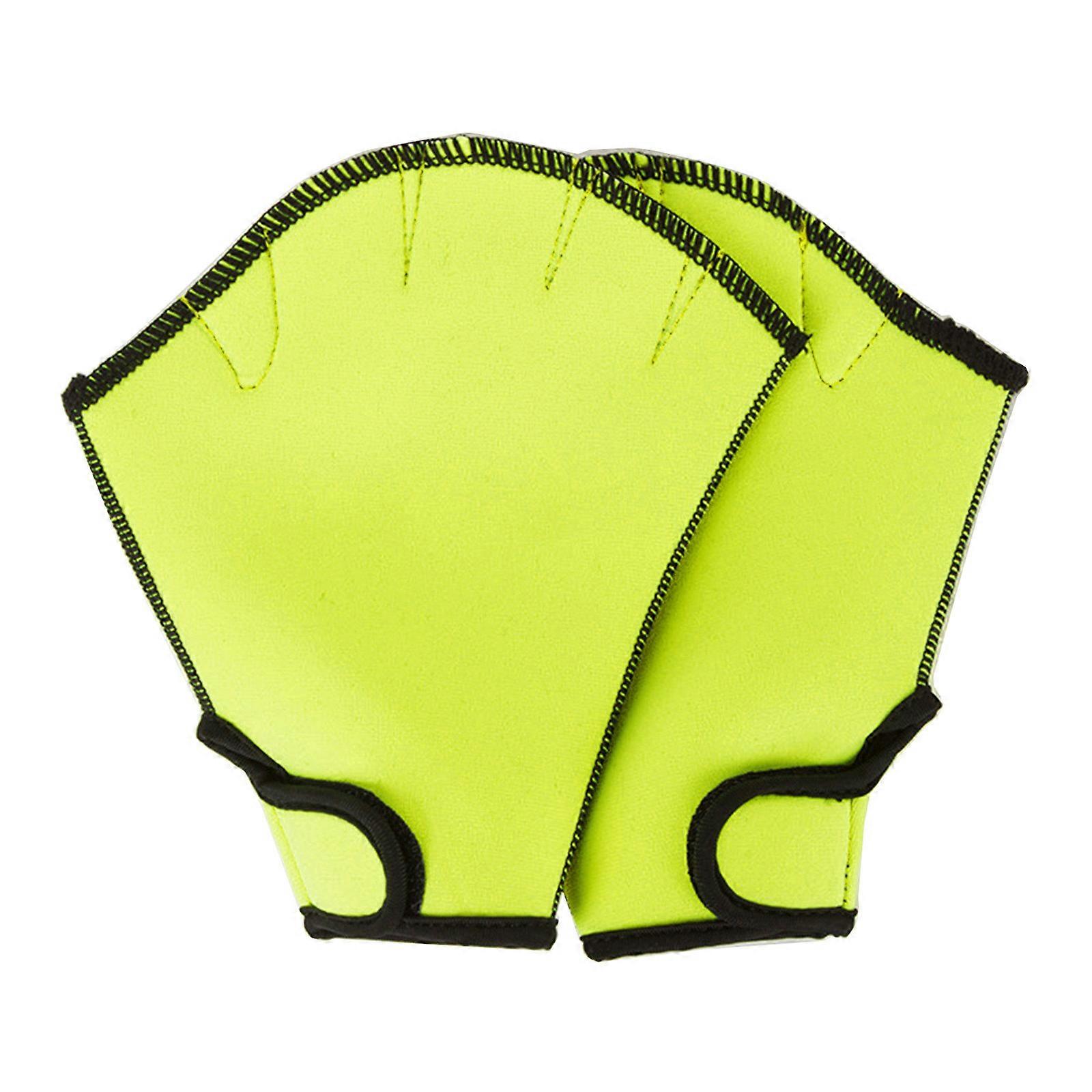 1 Pair Aquatic Swimming Gloves Webbed Swim Gloves Fingerless Water-Resistance Paddle Gloves for Diving Surfing, 3 Size Yellow S