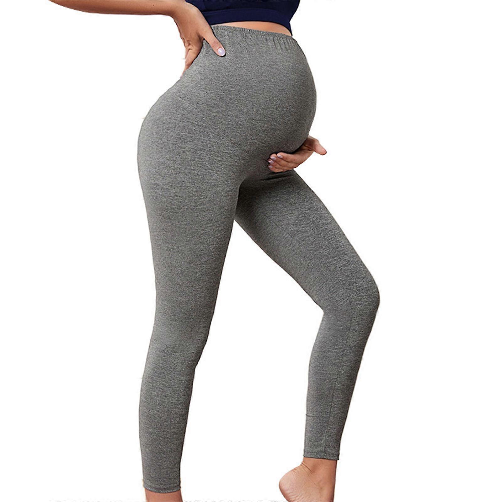 High Waist Maternity Yoga Pants With Full Belly Support, Breathable Stretchy Fabric Leggins For Workouts Gray XL