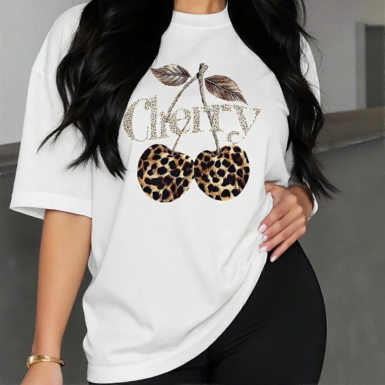 Women's summer casual fashion cartoon rabbit pattern printed loose round neck short sleeved T-shirt+tight shorts two-piece set