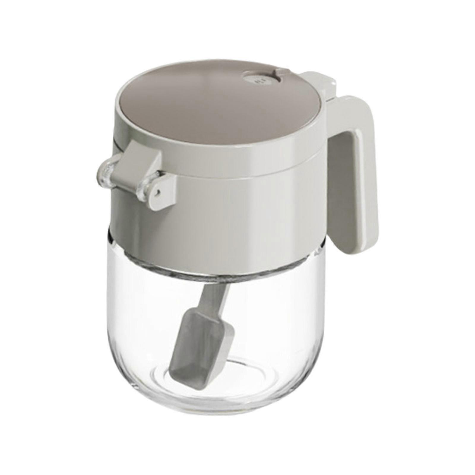 Salt Dispenser With Duals Function Glass Container For Controlled Seasoning And Spices Storage Kitchen Essential Warm Gray