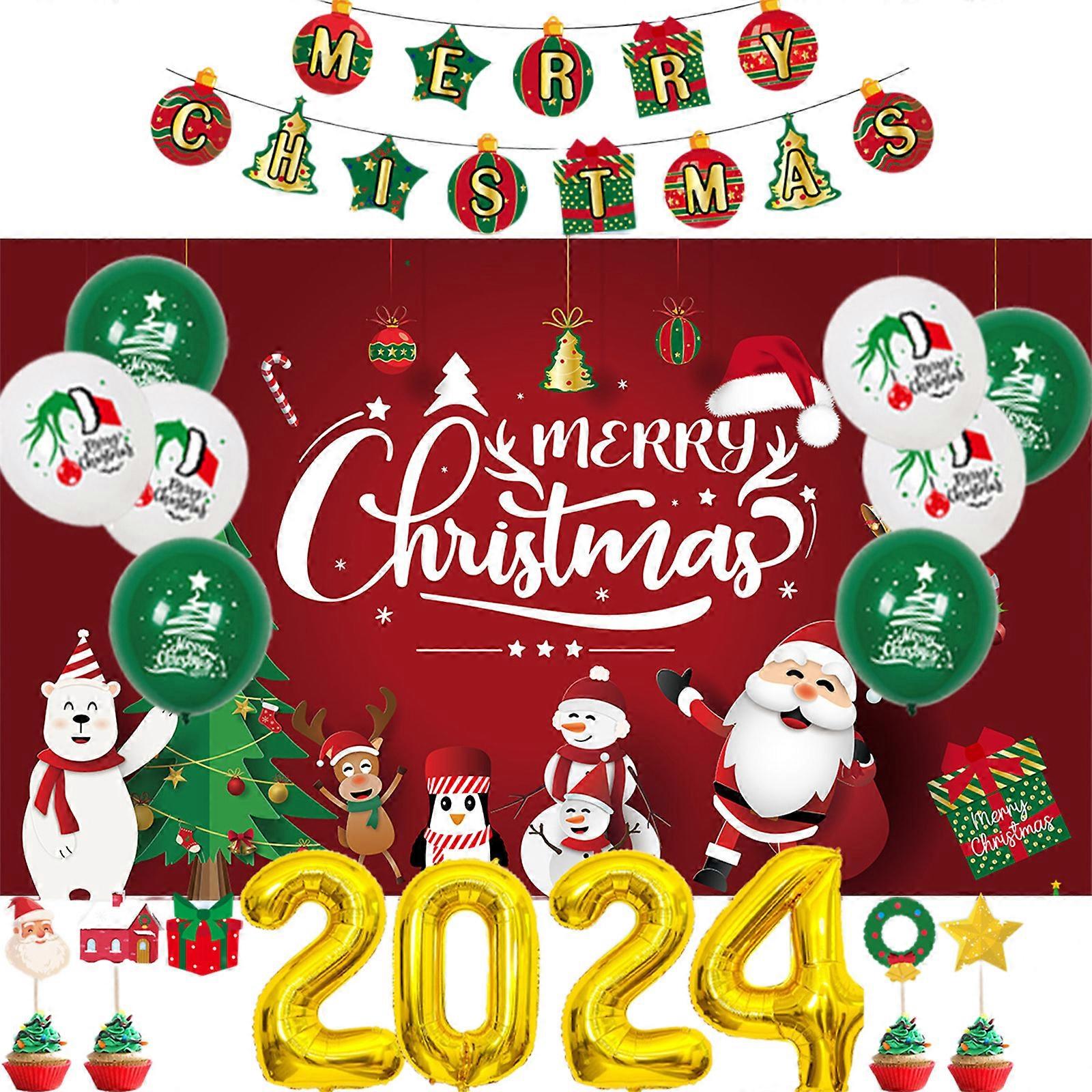 Durable Latex Balloon Set Christmas Themed Ballon with Banner Background Cake Toppers for Decorating Homes and Offices Multicolor