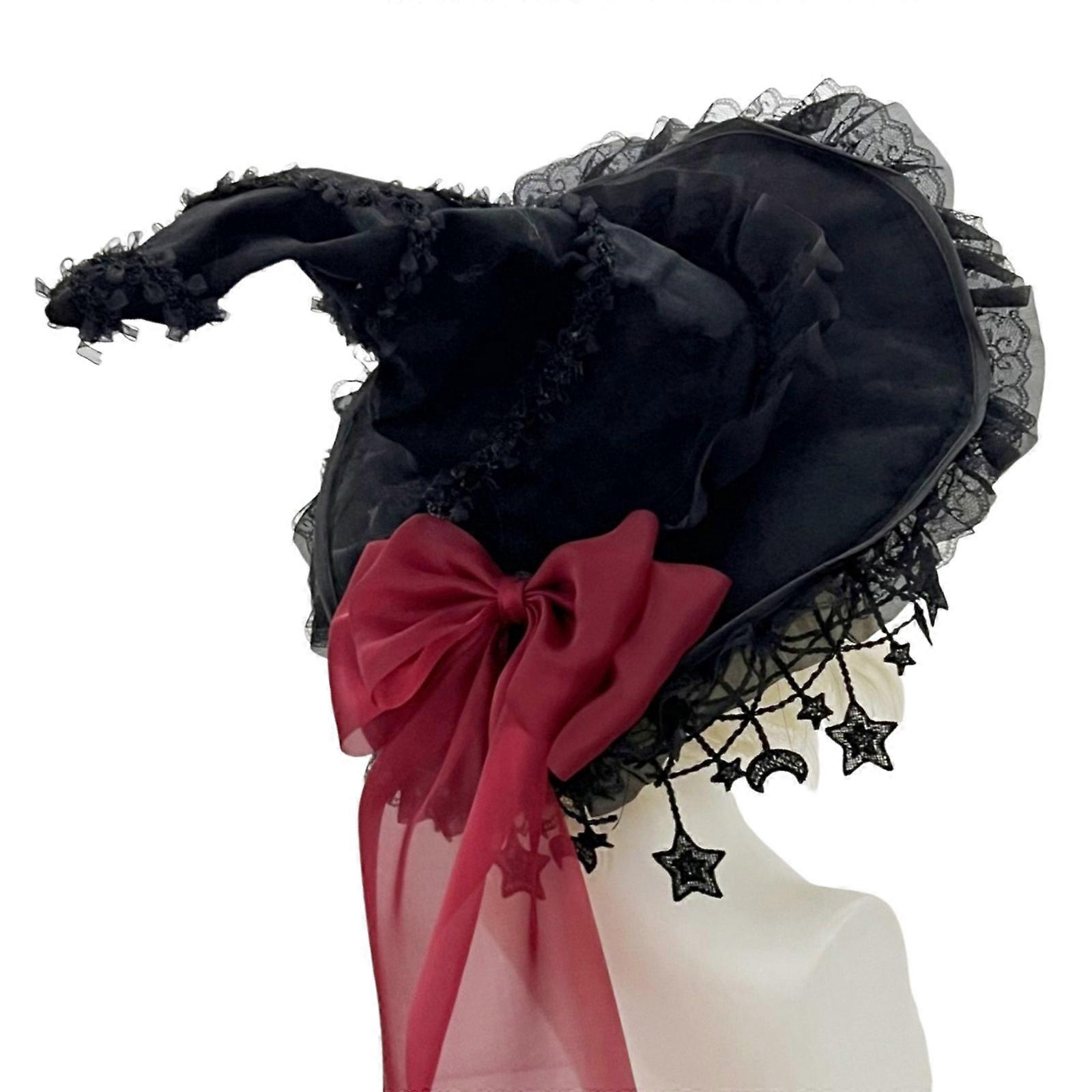 Halloween Witch Hat Bowknot Designs Wizard Caps Large Black Witches Witch Hat for Halloween Party Decor Cosplay Costume Red
