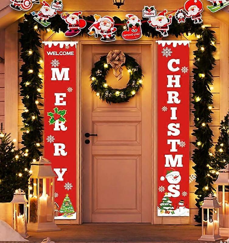 Merry Christmas Banner with LED String Lights, Indoor Outdoor Door Decor, Red Xmas Porch Sign for Holiday Party Wall Hanging (Color Lights)