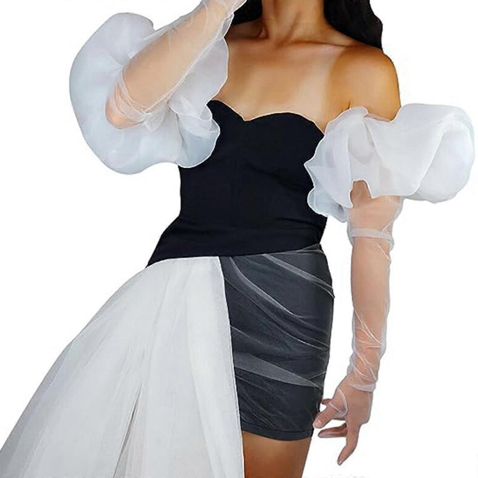 Classical Wedding Gloves Arm Protective Puff Cuffs Arm Sleeves for Bridal Shower and Evening Party Photography Armwear White