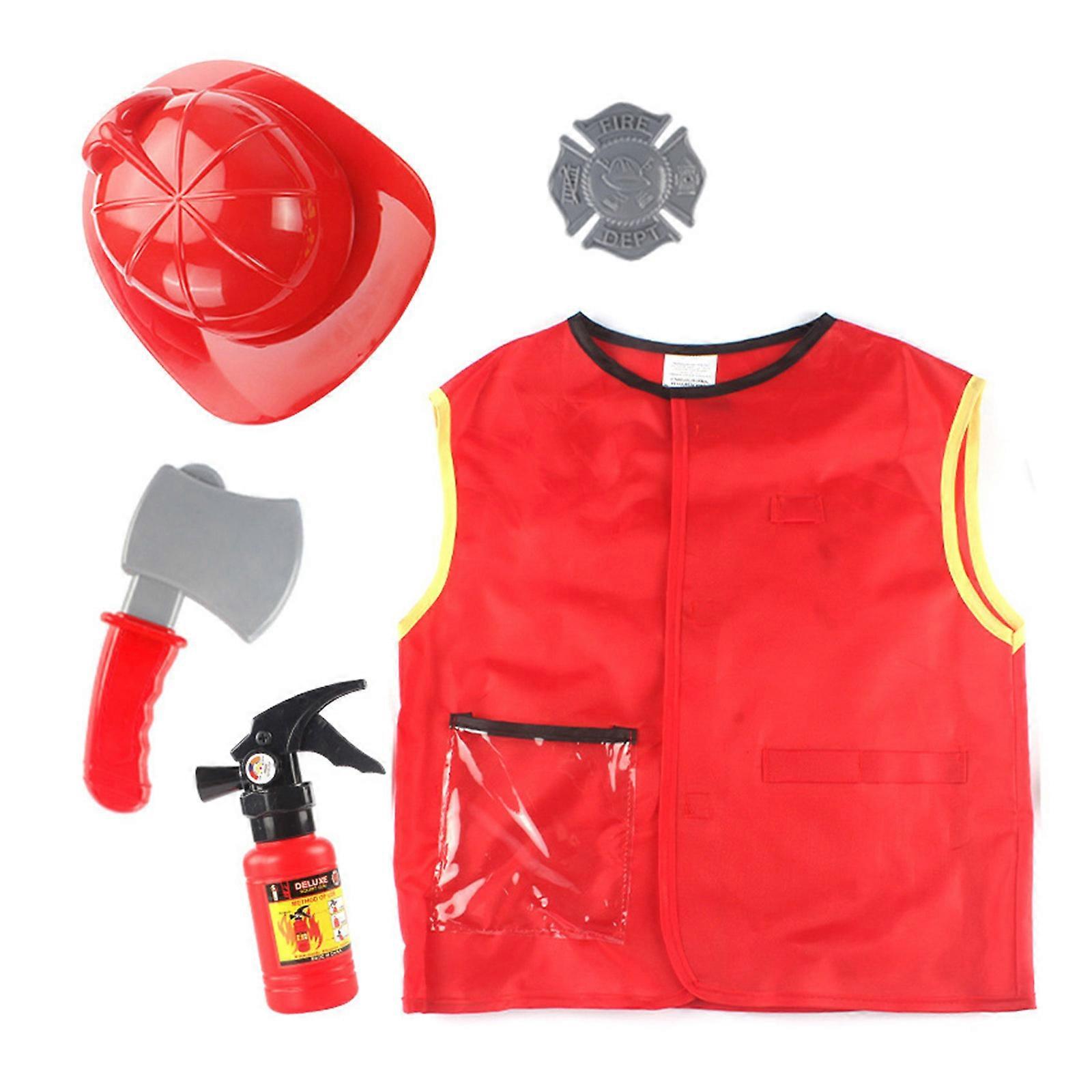 Fireman Costume Fire Brigade Role Play Set with Fire Extinguisher Fireman Helmets Fireman Toy For Halloween Fancy Dress Red
