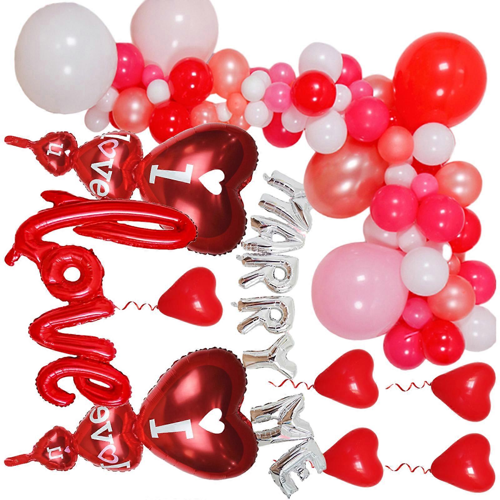 Valentine's Day Heart Balloons Set Proposal Party Decor Latex Balloons Festive Birthday Celebration Decoration Set Multicolor