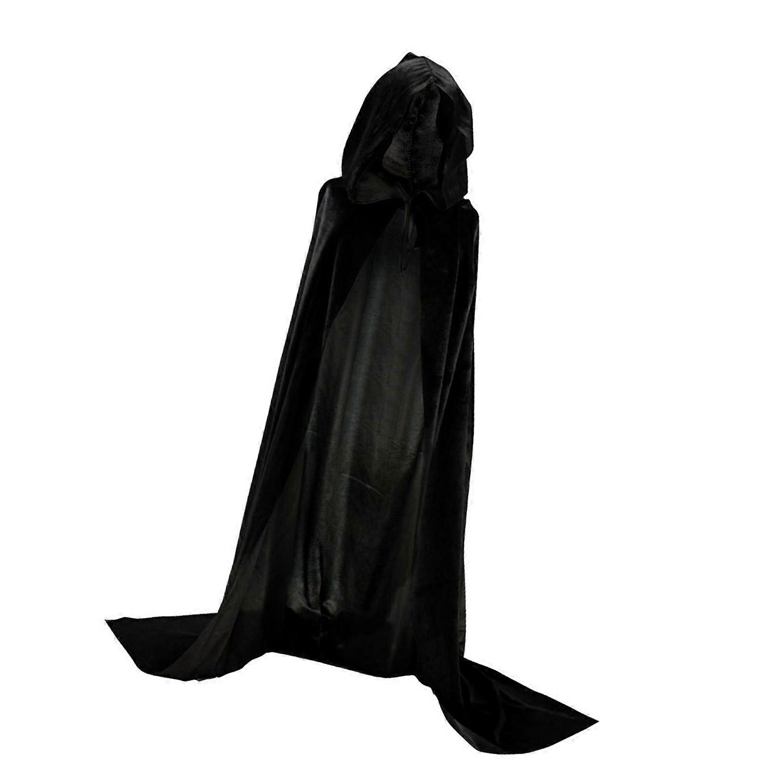 Renaissances Hooded Cape Velvet Cloak Victorian Capelet Medieval Hobbits Cosplay Halloween Costume for Womens Men Gifts Black 170cm