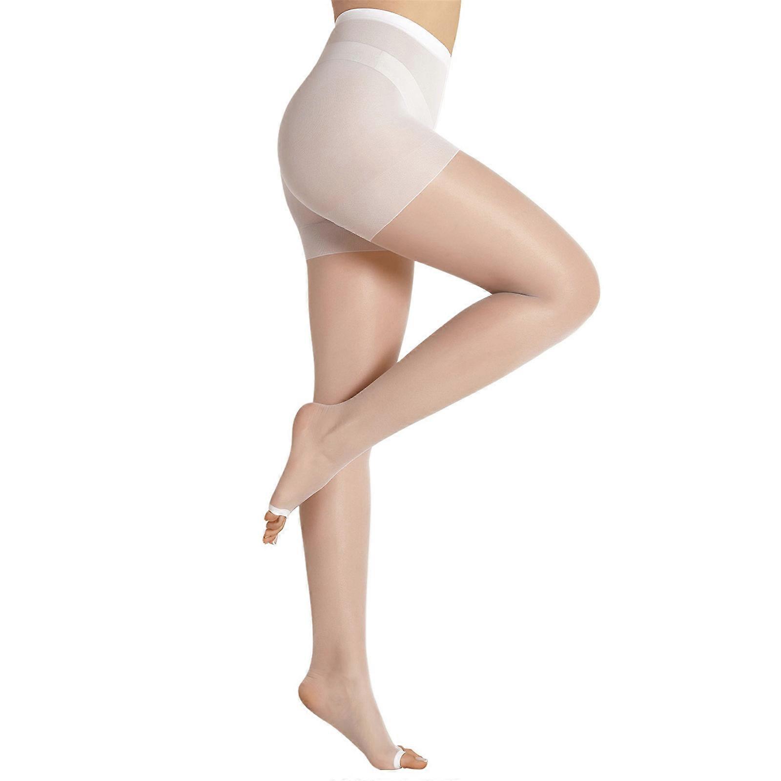 Summer Nylon Sheer Stockings Open Toe Design For Women Lightweight Control Top Tights Toeless Nonslip Pantyhose Hosiery White XL