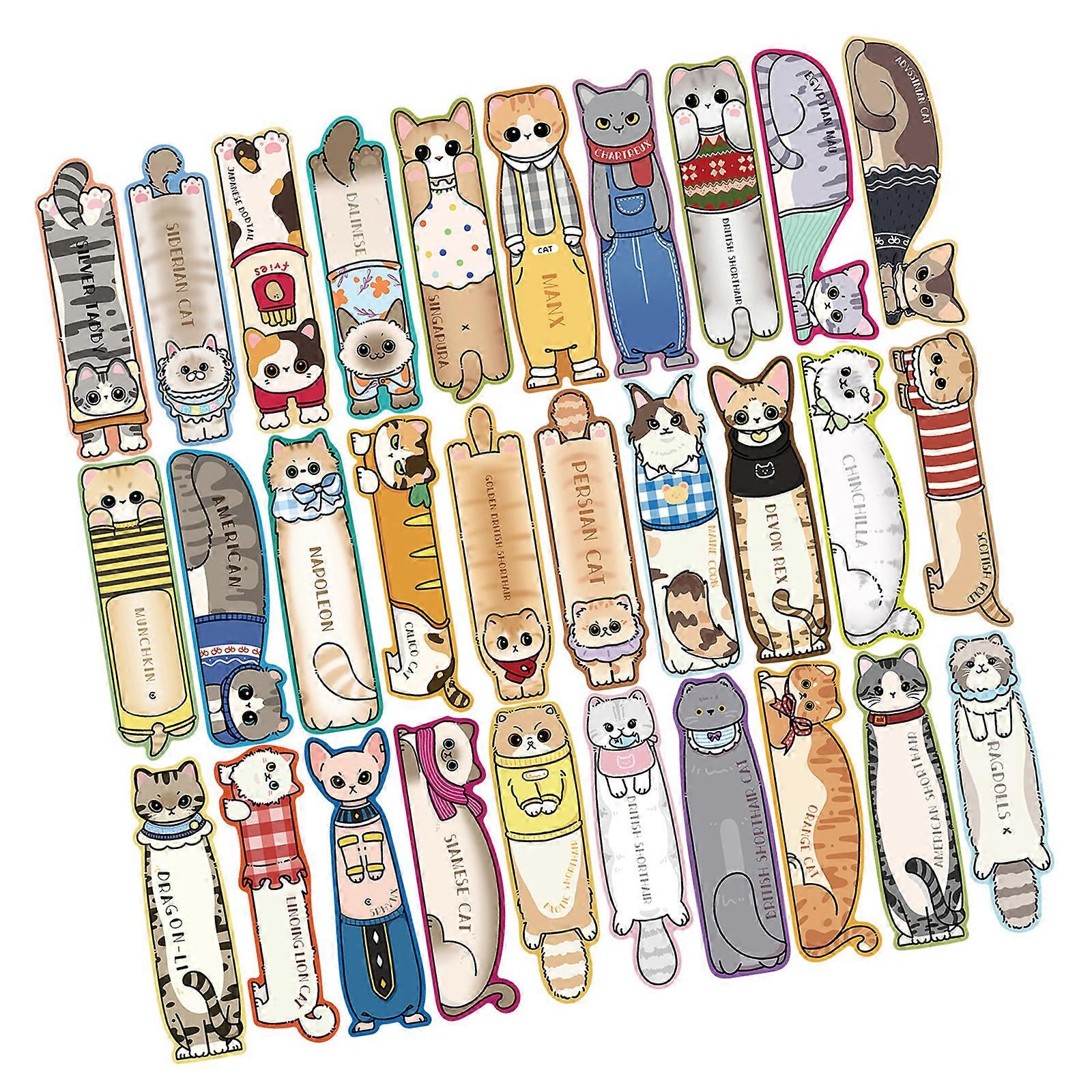 30Pcs Animal Cats Kitten Bookmarks Book Mark Book Page Divider 1.6x5.6In Bookmarks for Book Lover Reader Student Teacher Multicolor