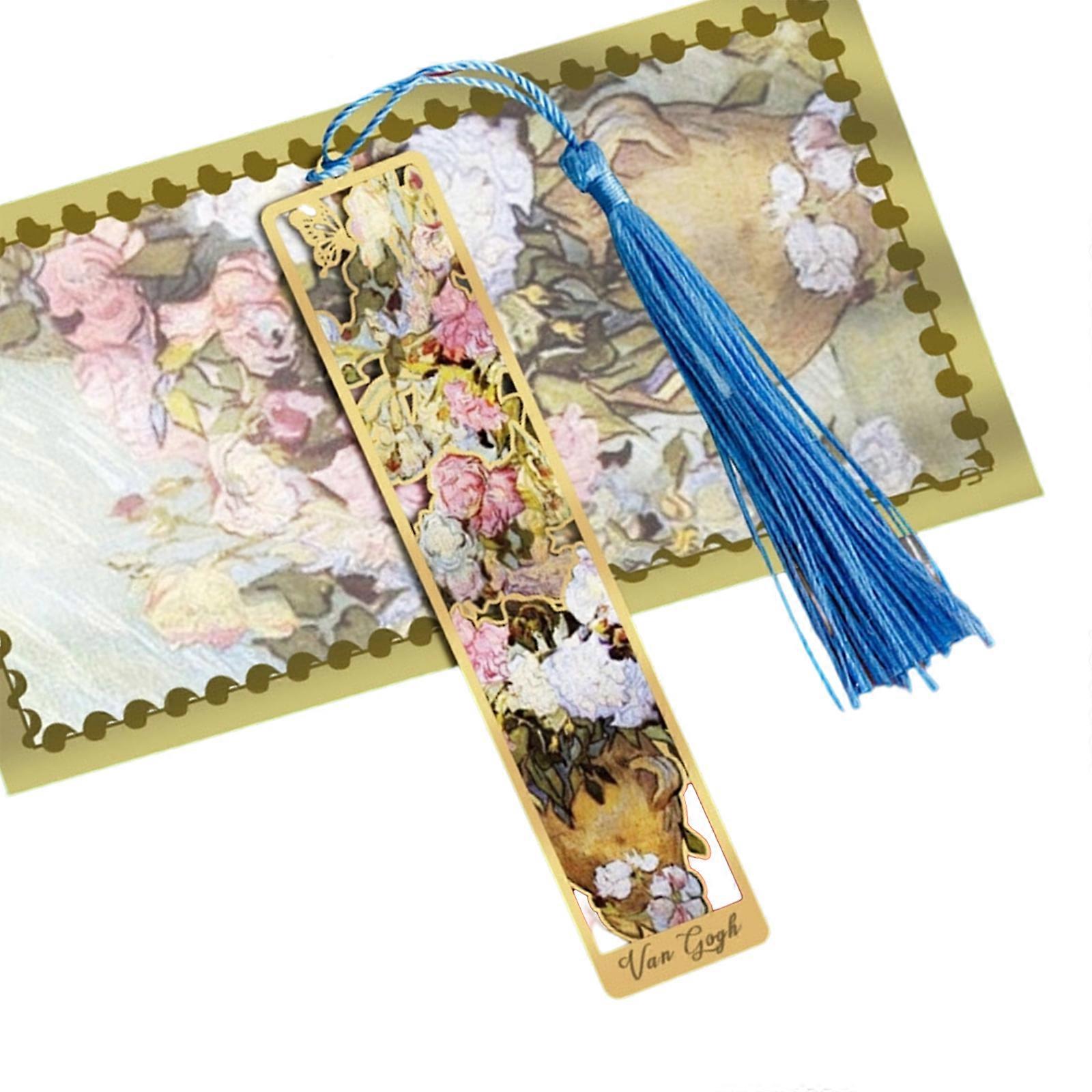 Hollowed Oil Painting Engraved Bookmarks Metal Bookmarks with Tassels Hollowed Flower Book Marker for Book Lover Student Flowers