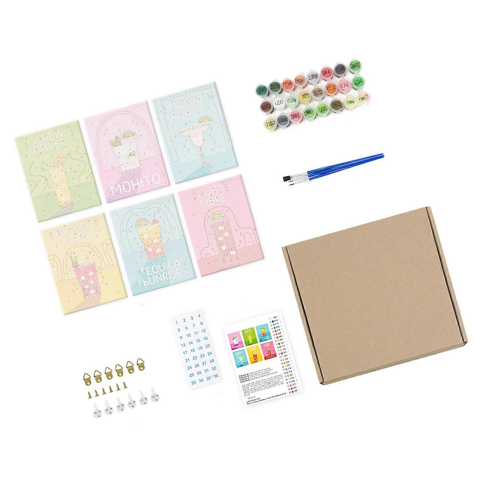 6PCS Preprinted Linen Canvas Number Art Painting Set Includes Multicolor Acrylic Paint Art Brush For Beginner Adult Kid Multicolor