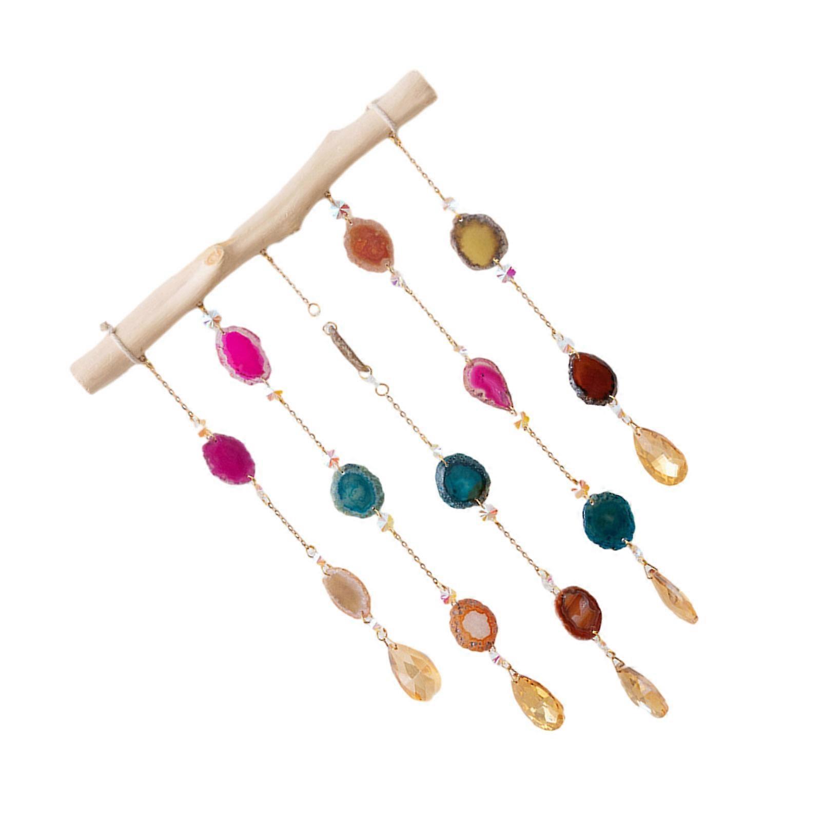 Colorful Crystal Wall Hanger Agates Slices Wood Meditation Hanging Ornament Window Home Decor for Living Room Outdoor Multicolor