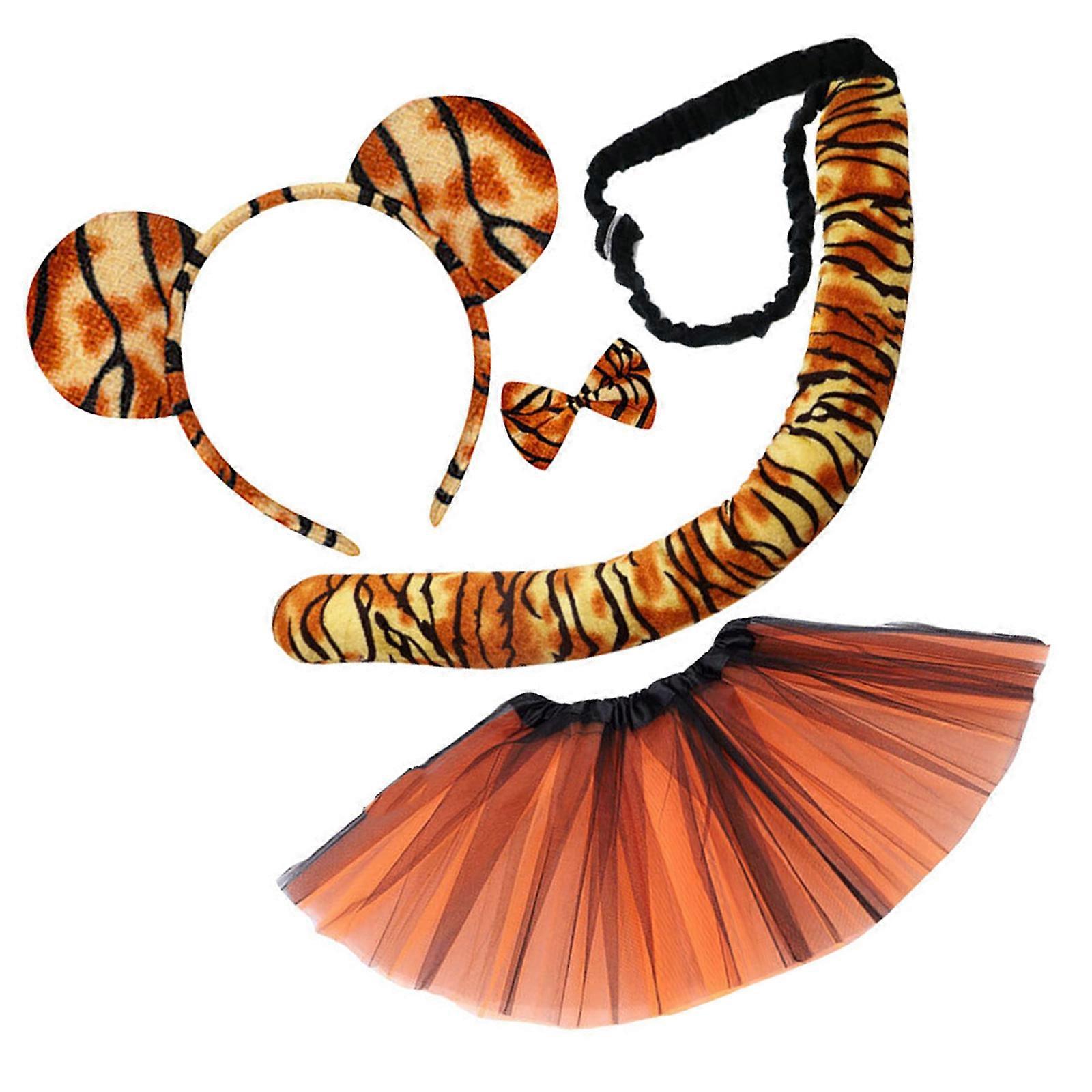 4Pcs Tijger Costumes Accessories Set Tijger Ears Headband,Bowtie,Tail Tutu Accessories Kit Halloween Animal Dress Up Set Multicolor