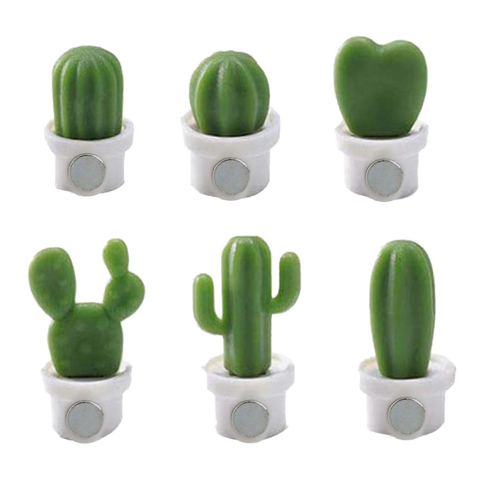 6Pieces Resins Succulents Cactus Potted Plant Magnets For Fridge Door Multifunctional Message Holders With Secures Grip White