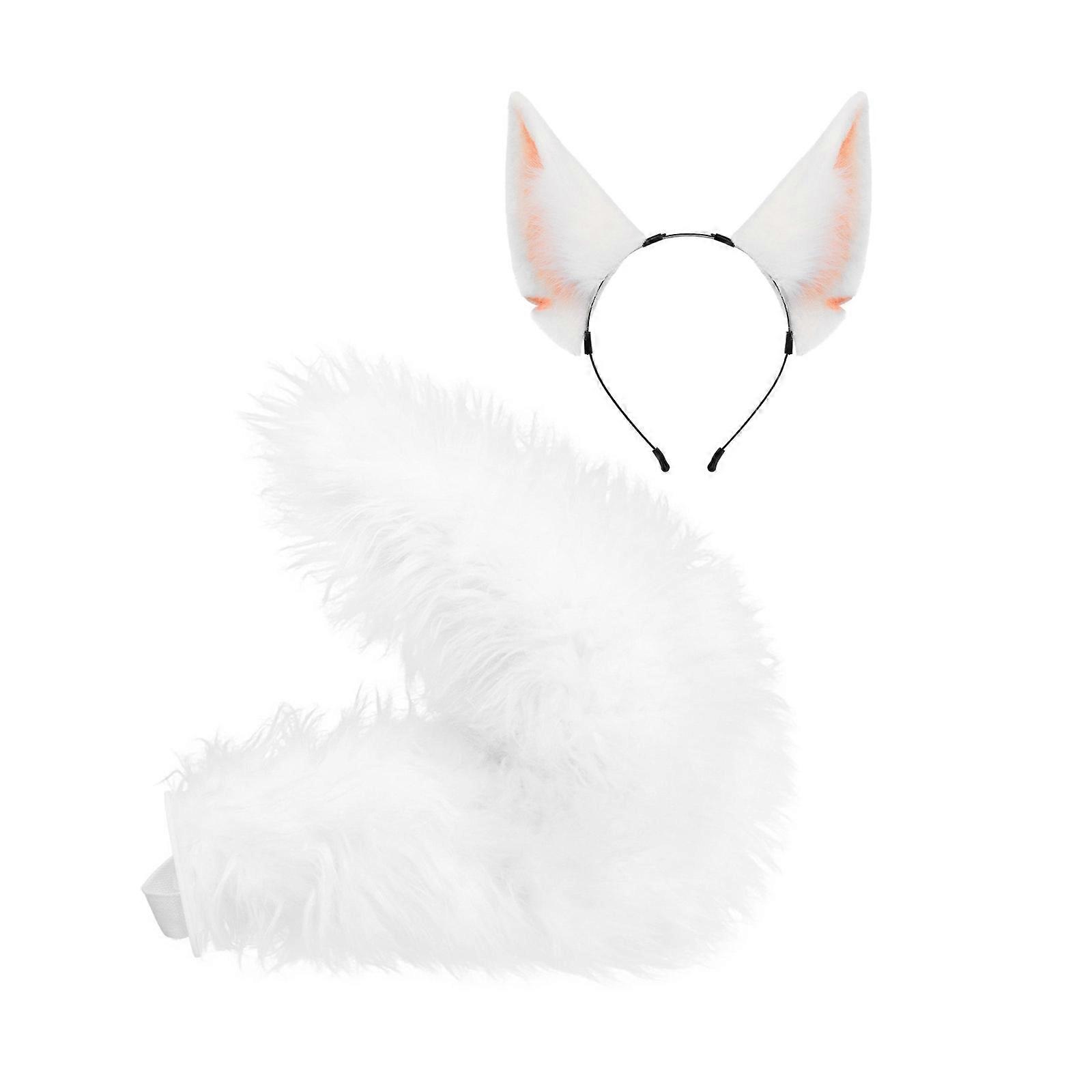 Faux Furs Cats Foxes Wolf Furry Tail and Ears Headband Halloween Party Cosplay Costume Accessories Cats Tail with Tail Multicolor