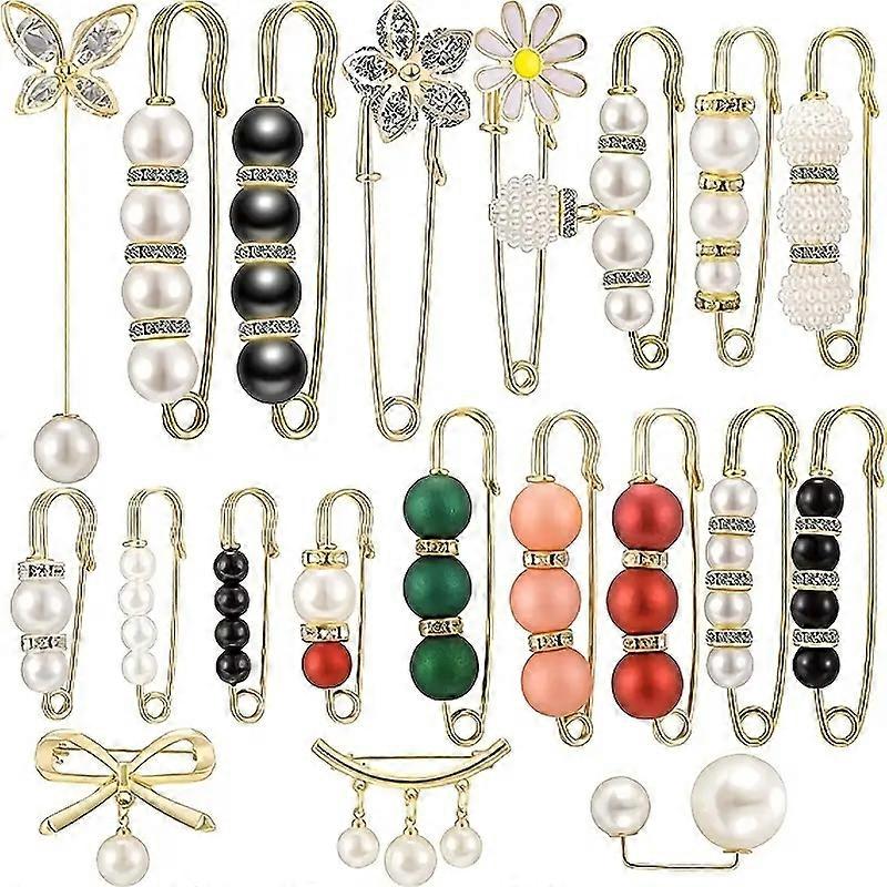 Complete Your Look with Elegance: 20pcs Women's Artificial Pearl Brooch & Clip Set