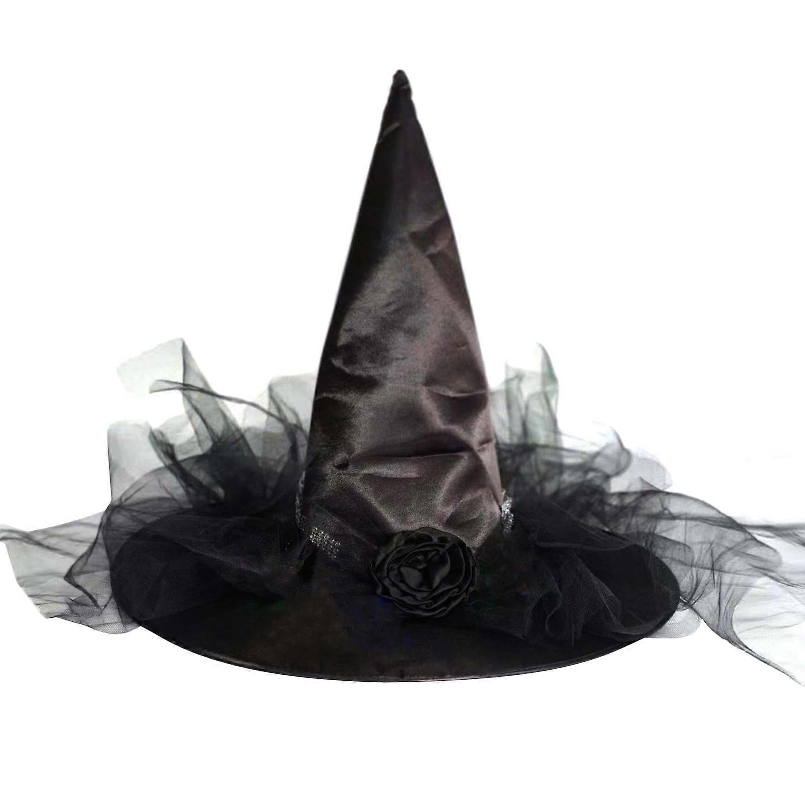 Cosplay Props Witch Hat Tulle Flower Wizard Hat for All Age Halloween Hat Roleplay Witch Hat Cloche Hat Holiday Headwear Without lights