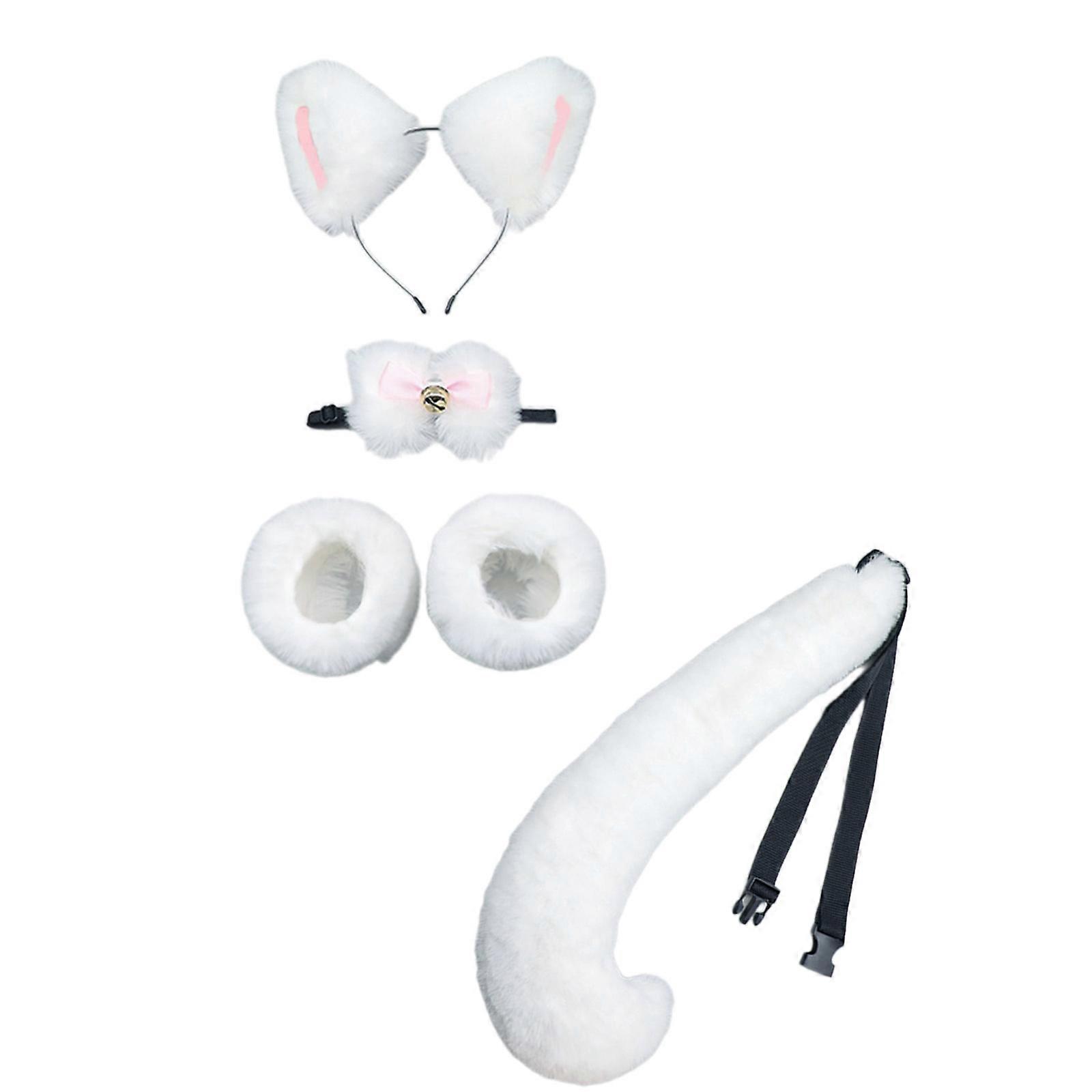 Faux Furs Cat Foxes Ears Headband with Tail Set Foxes Tail,Foxes Cat Ears Tail Bowtie Oversleeve Halloween Cosplay Props White