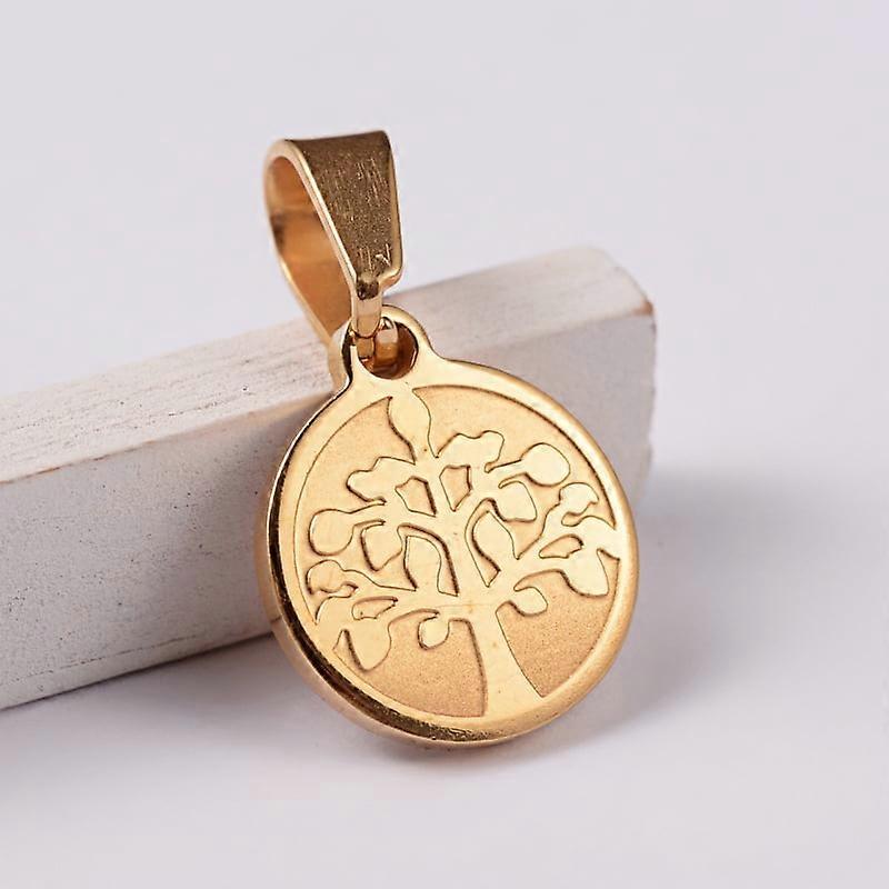 1pc Flat Round with Tree 304 Stainless Steel Charms 14x12x1.5mm