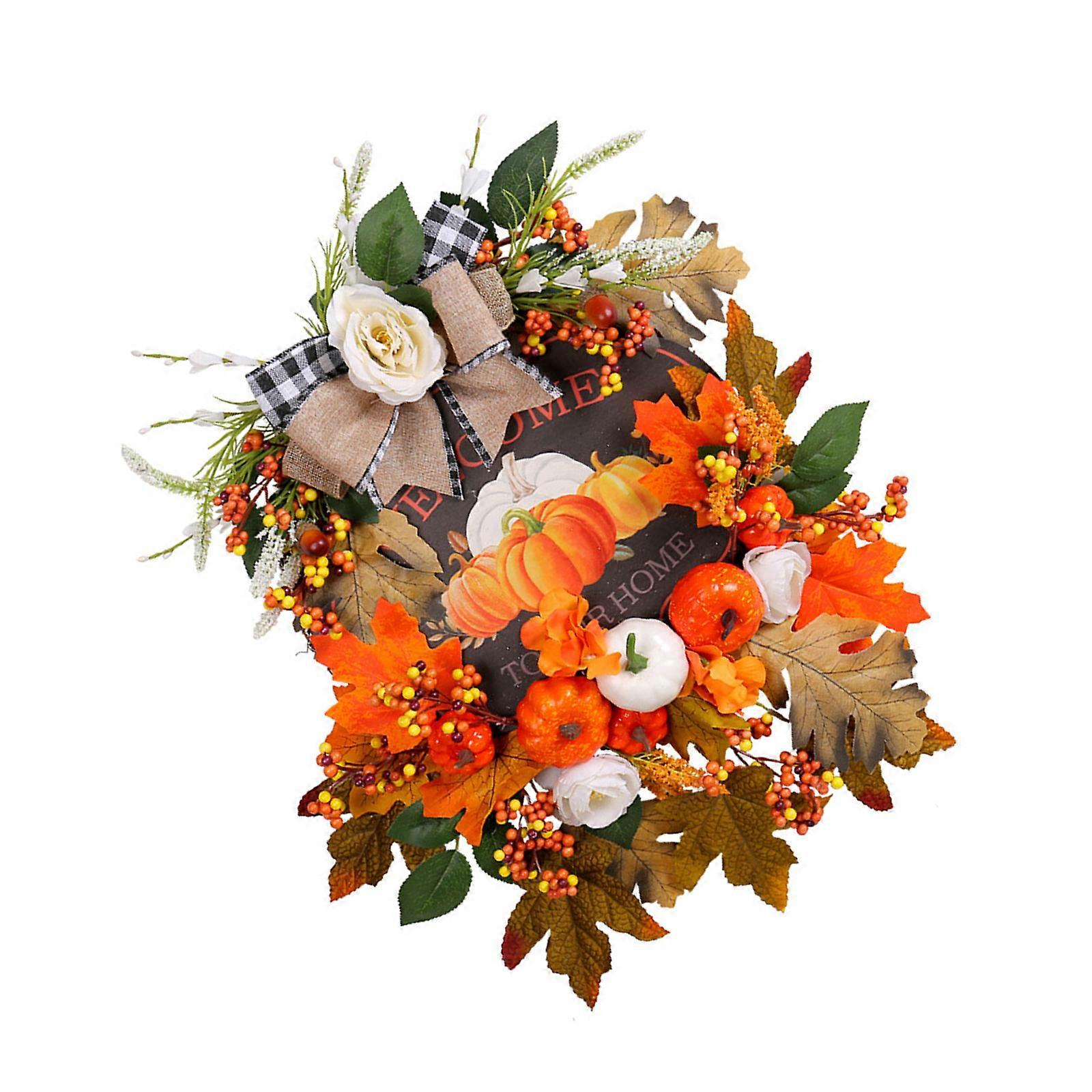 Elegant Thanksgiving Festive Door Decoration Artificial Maple Leaf Christmas Wreath with Pumpkins and Pine Home Accent Multicolor