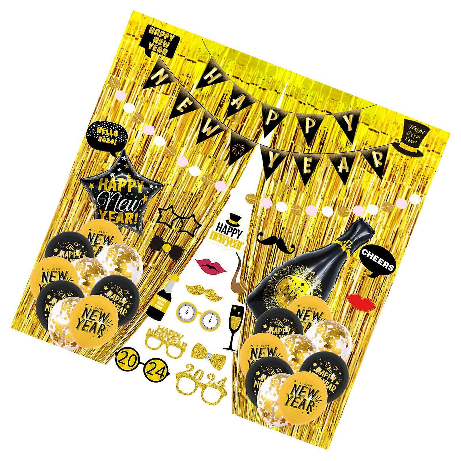 2024 New Year Party Decoration Set Elegant Black and Gold Theme Balloon, Happy New Year's Celebration Party Supplies Multicolor