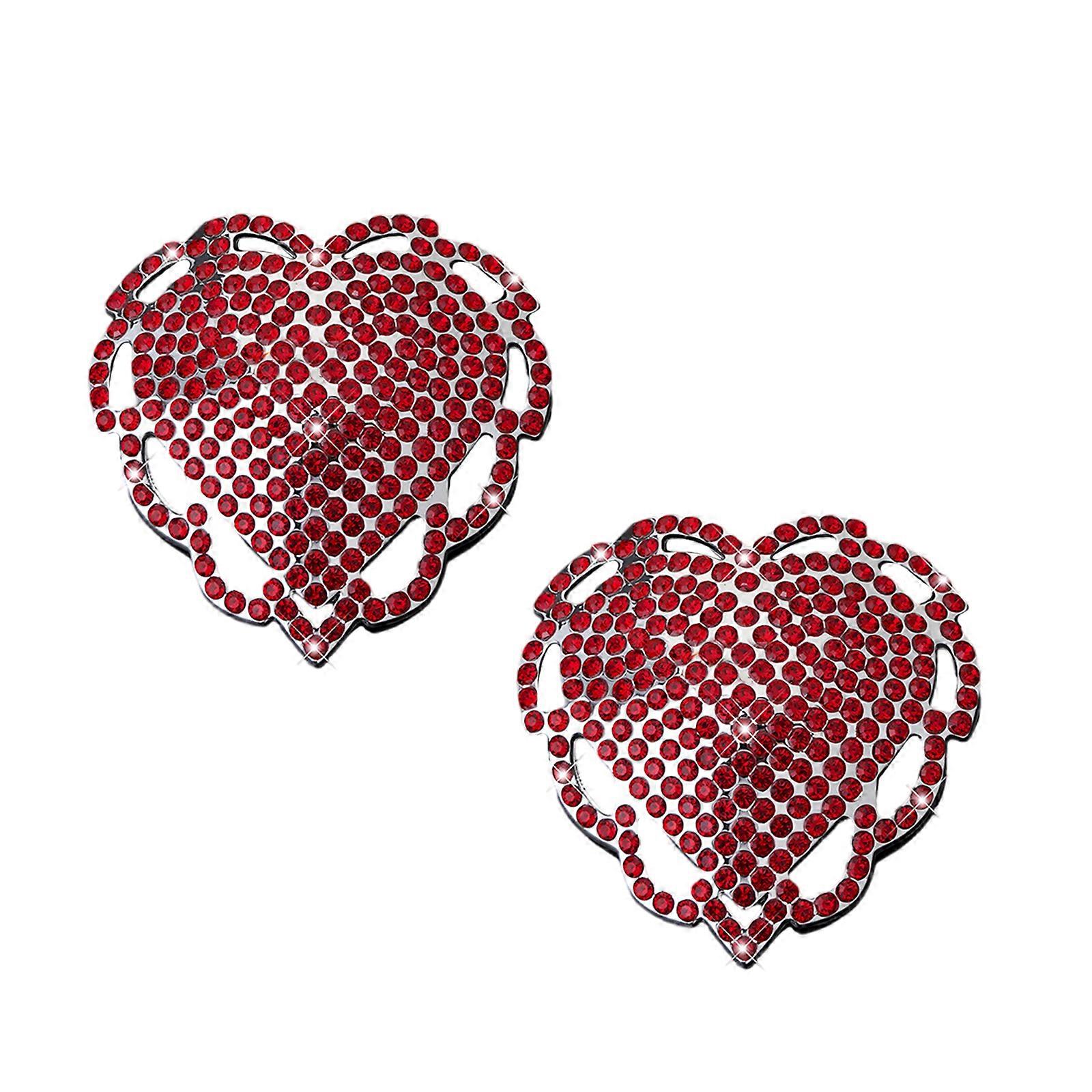 Women Reusable Breast Pasties Nipple Stickers Breast Covers Heart Shaped Adhesive Breast Bra with Rhinestones Gifts Red