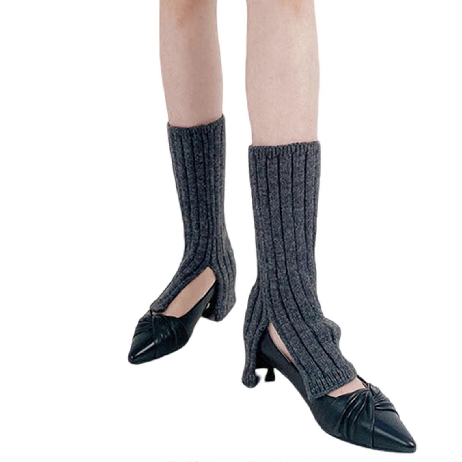 High Elastic Stockings Leg Warmers Fashion Ribbed Knitted Long Socks Crochet Calf Socks Solid Color Winter Loose Socks Gray