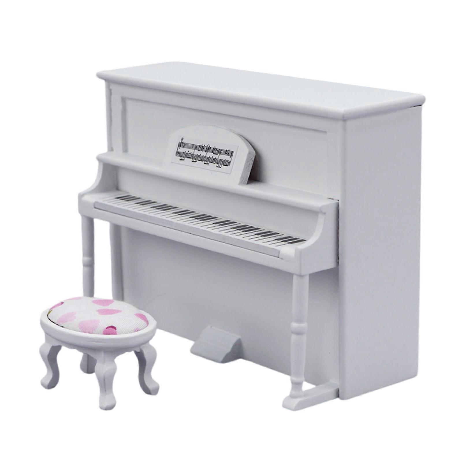 Dollhouses Piano Model Music Instrument Set for Room Decoration Small Stool Craft Miniature Decors White