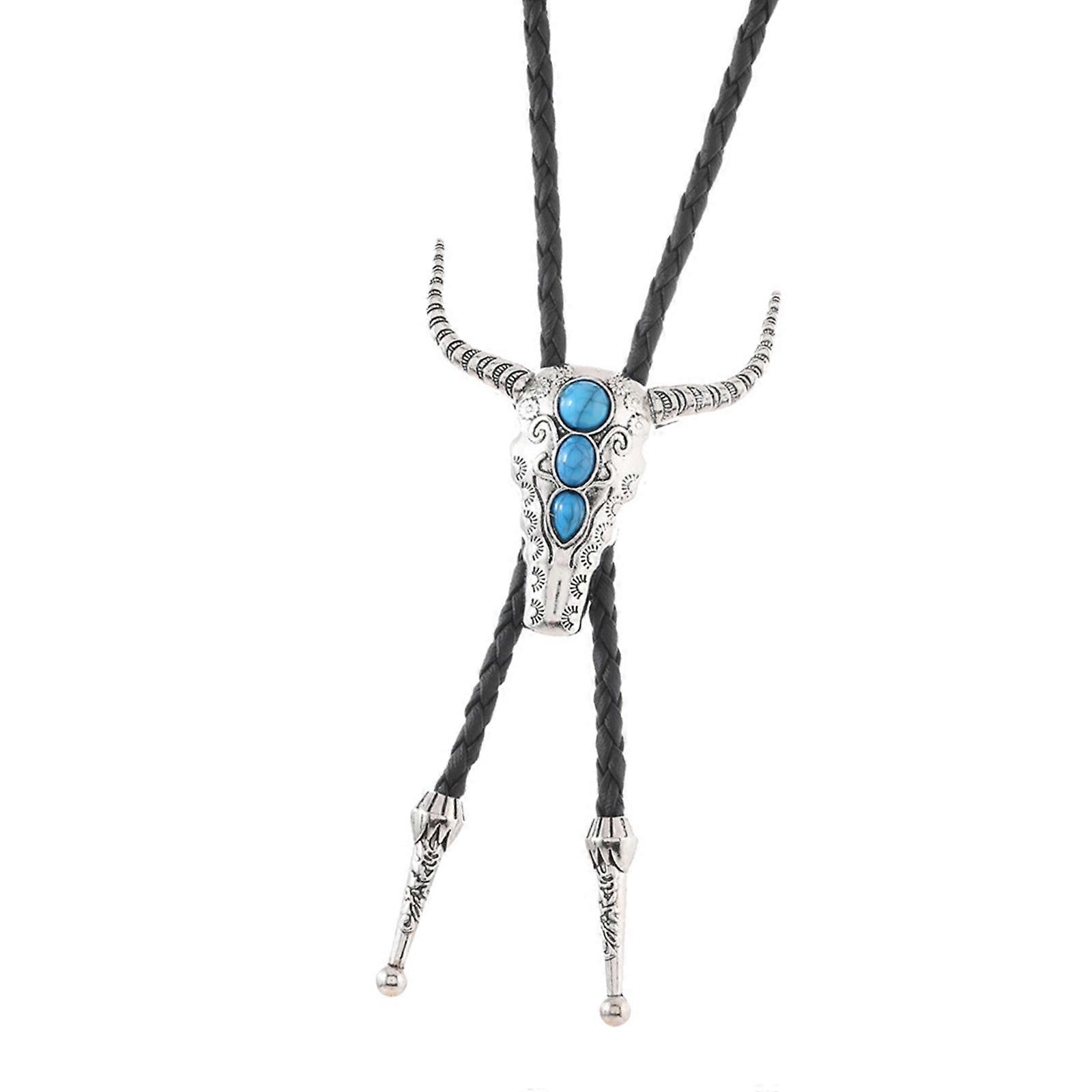 Antique Cow Head Pendant Bolotie Jewelry For Men's Western Theme Party Music Festival Travel And Winter Sweater Necklace Ancient silver