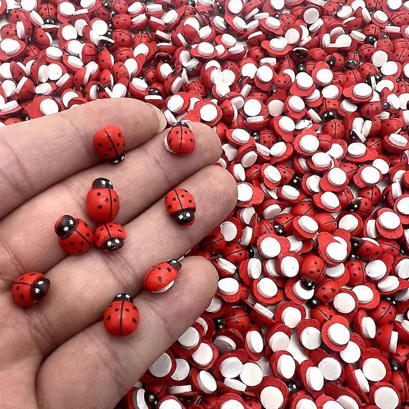 50/100pcs Tiny Mini Self-Adhesive Wooden Ladybugs for Crafts, Micro Landscape Potted Plant Home Garden DIY Decoration Acessory