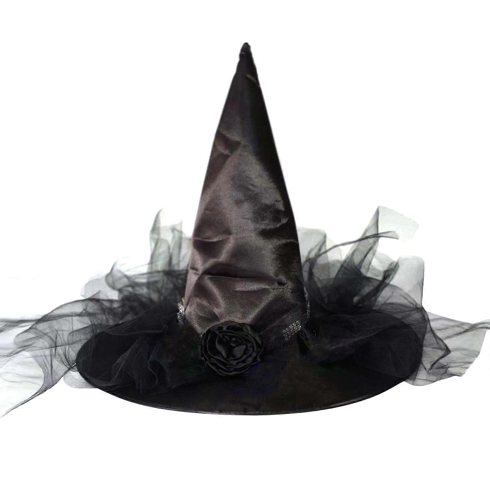 Halloween Witch Hat with LED Light Party Wizard Hat Tulle Pointed Witch Hat Adult Cosplay Costume Festival Hat Accessory Without lights