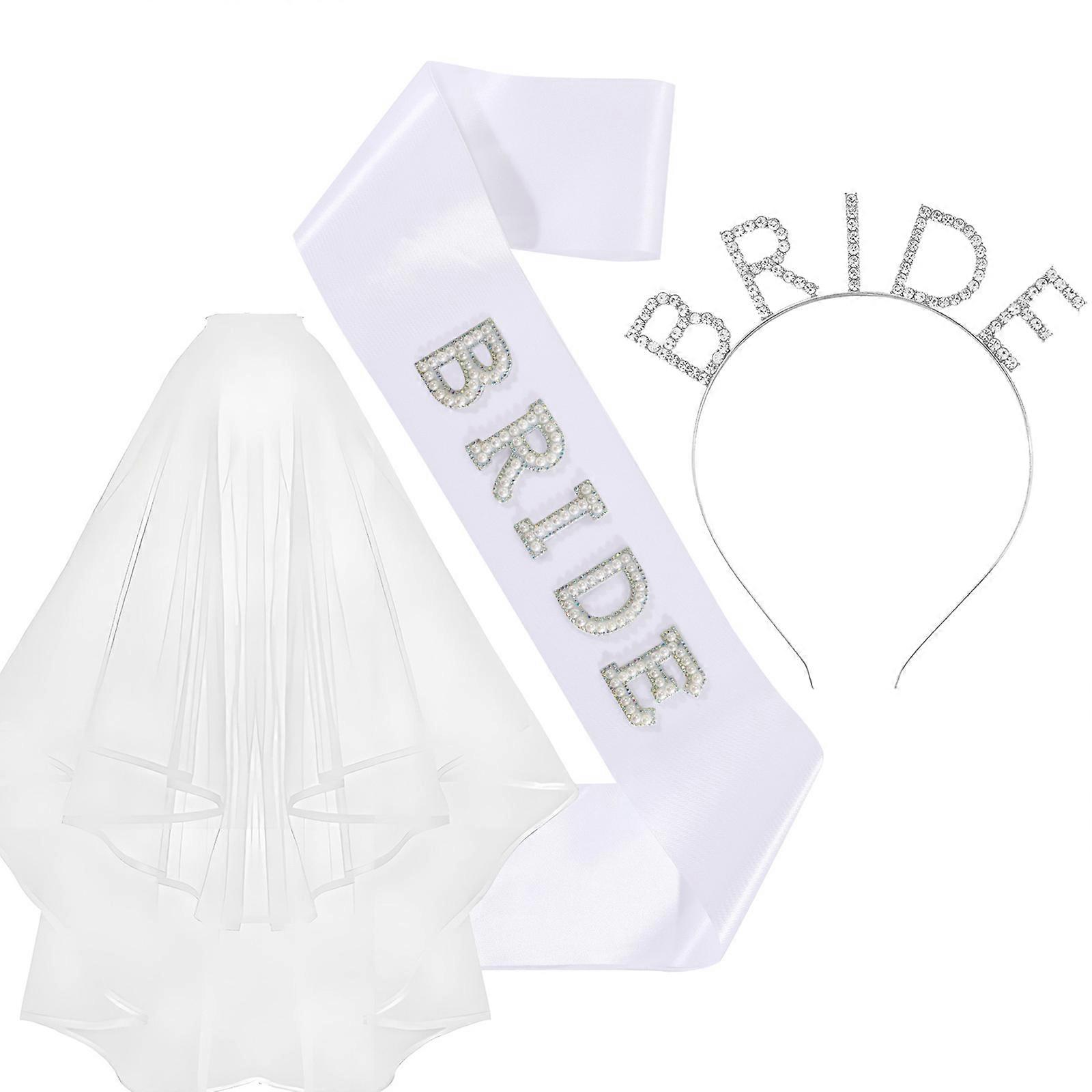 Bridal Accessories Kit Pearls Headpiece Delicate Veil Shoulder Ties For Bride Ceremony Event Multicolor
