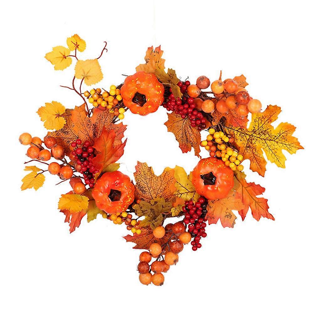 Fall LED Lighted Door Wreath Artificial Maple Leaf Pumpkin Thanksgivings Garland Multicolor