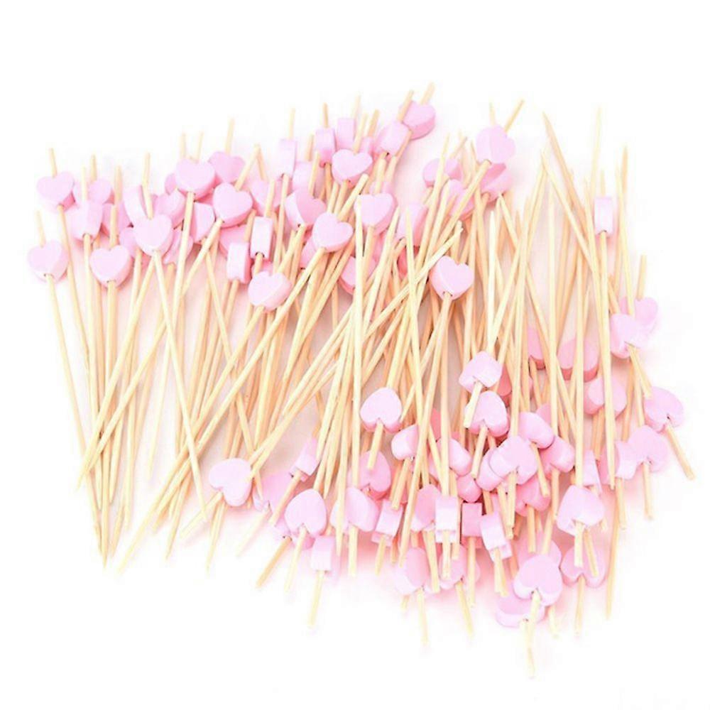 Wedding Party Vegetable Cake Salad Heart Shaped Cupcake 12cm Length Bamboo Toothpick Skewer Food Picks Stick Fruit Fork PINK