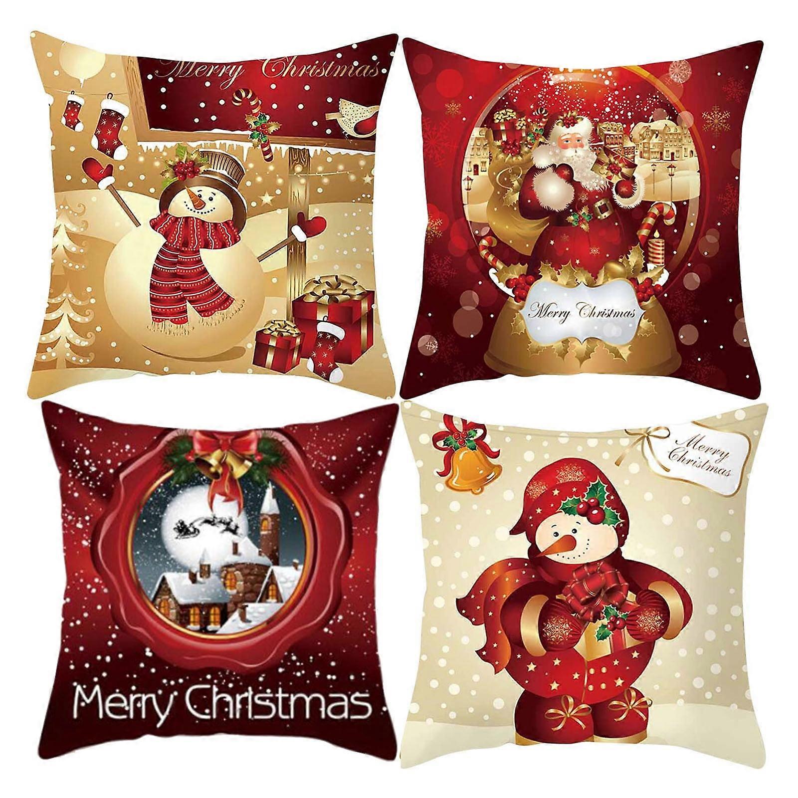 WinysinChristmas Xmas Cushion Throw Cover Lattice Pillow Case Cotton Home Sofa 4PCS