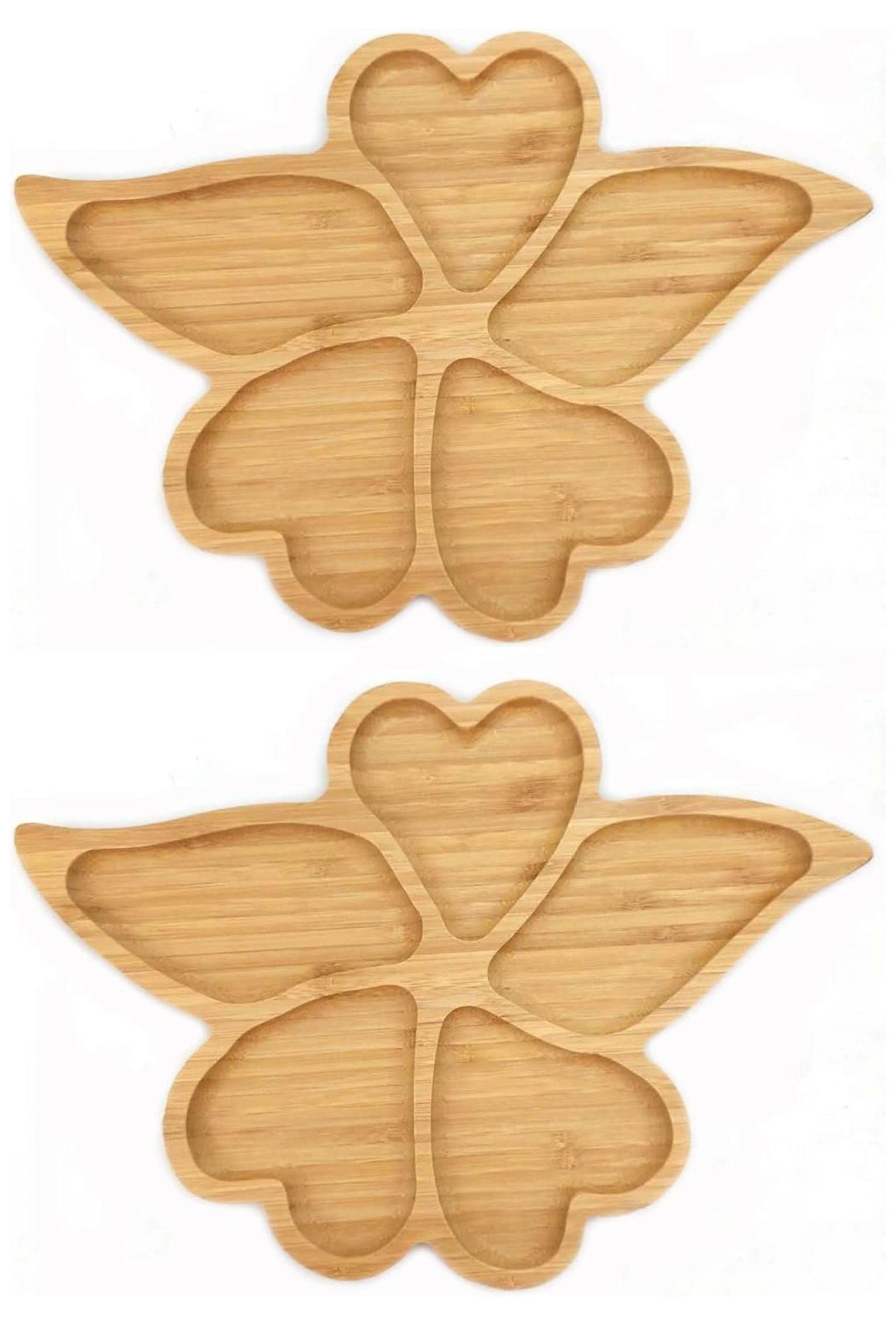 4917, Romantic Heart Shaped Platter Leave Design Wedding Bamboo Fruit Snack Serving Tray Appetizer Section Platter, Heart Shaped, 12.5"x8.6", 2 Pack