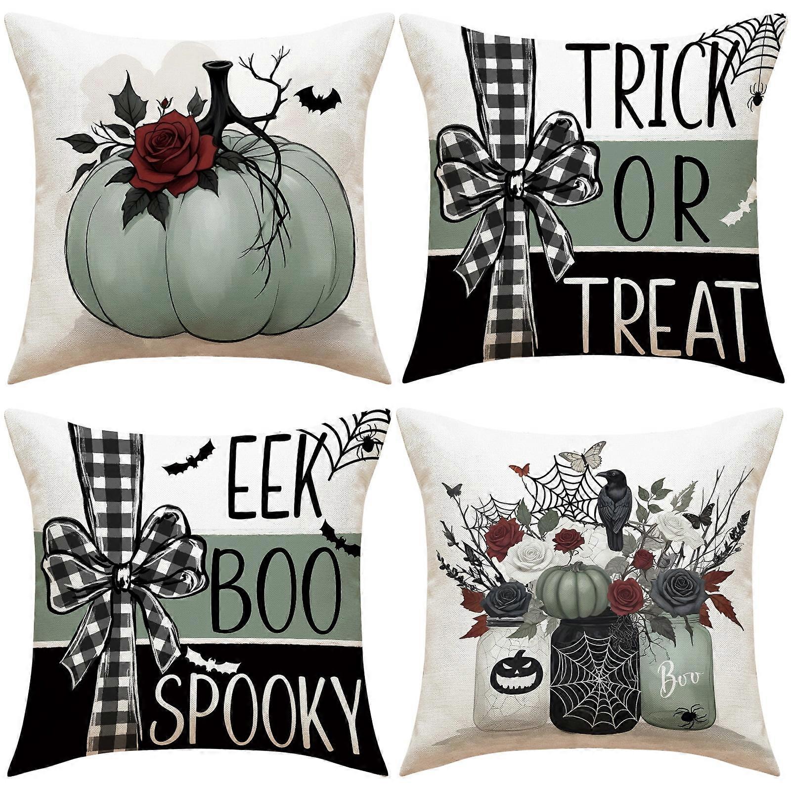 Halloween Pillow Covers 18x18 inch, Trick or Treat Pumpkin Ghost Throw Pillows for Fall Decor, Compatible with Couch Sofa